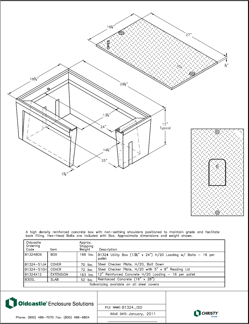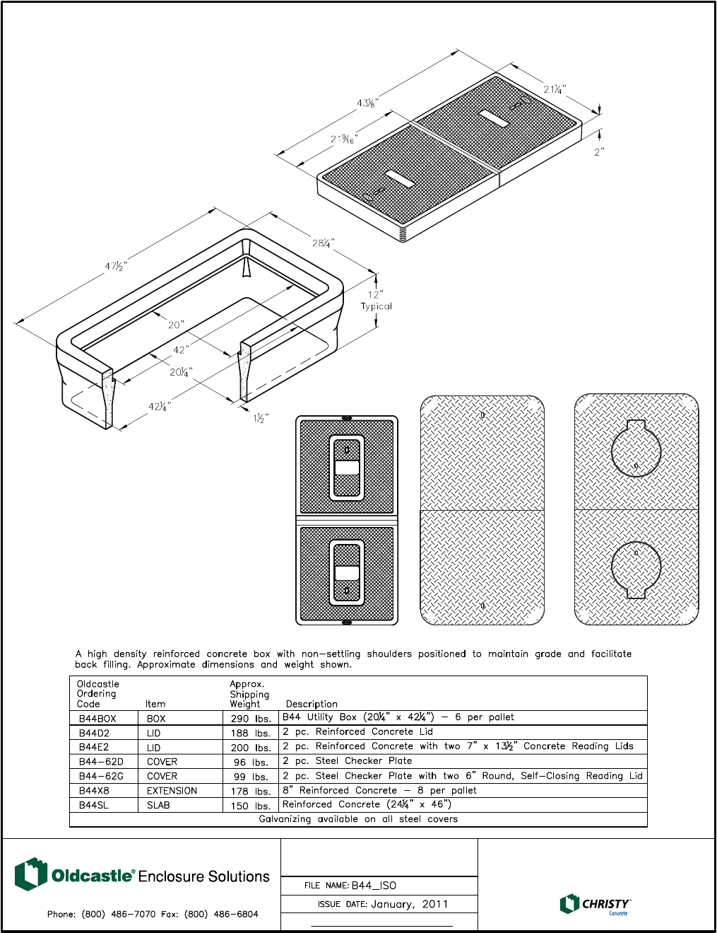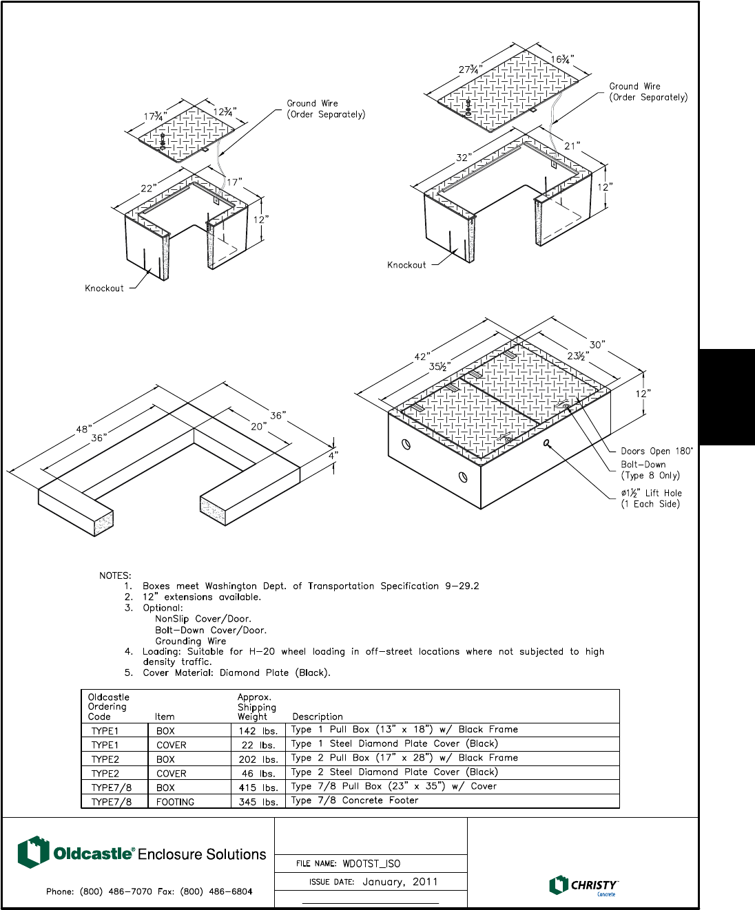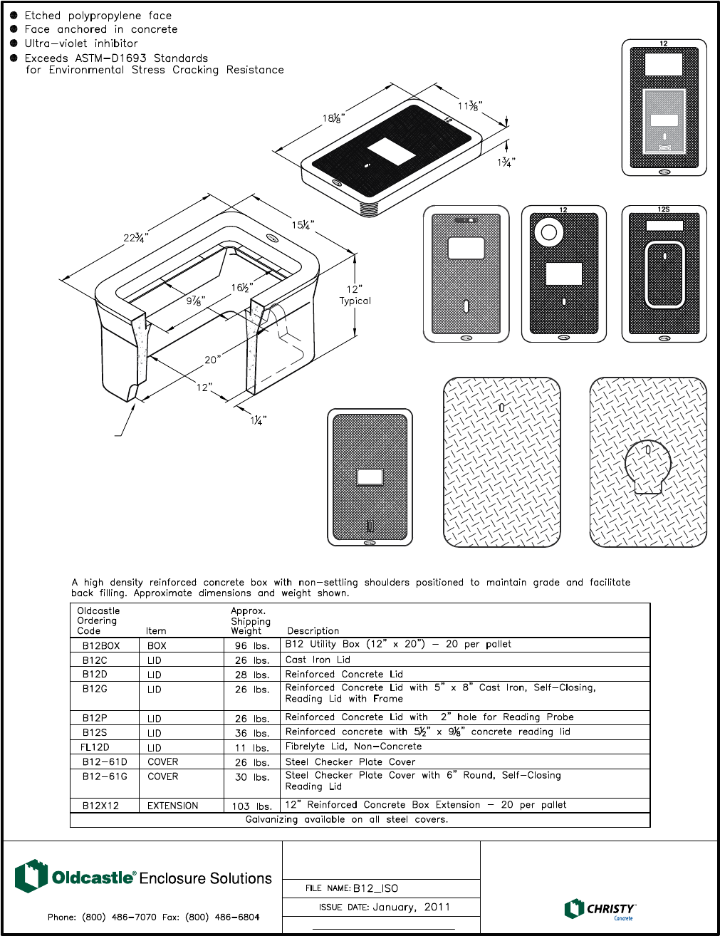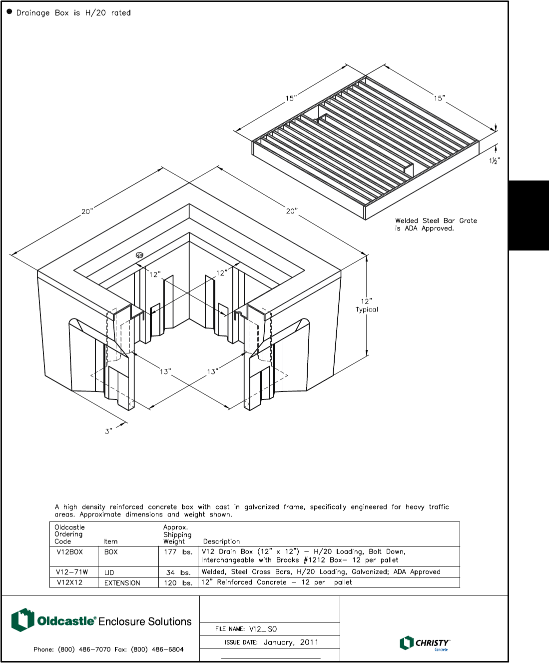 Oldcastle/Christy. Boxes and covers shall be concrete and have a