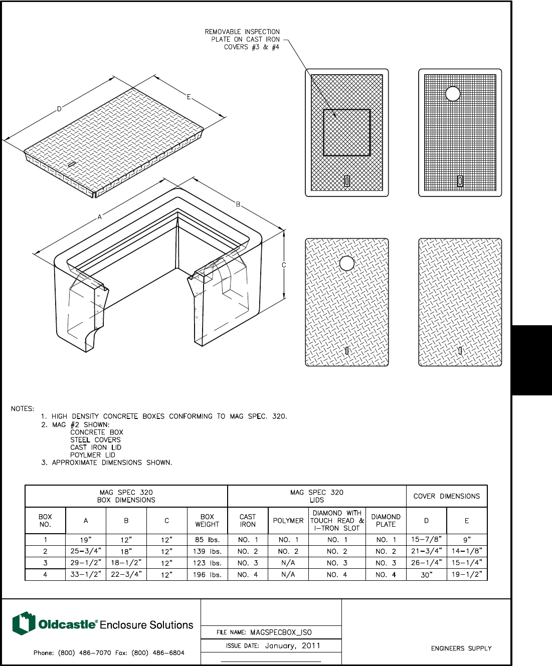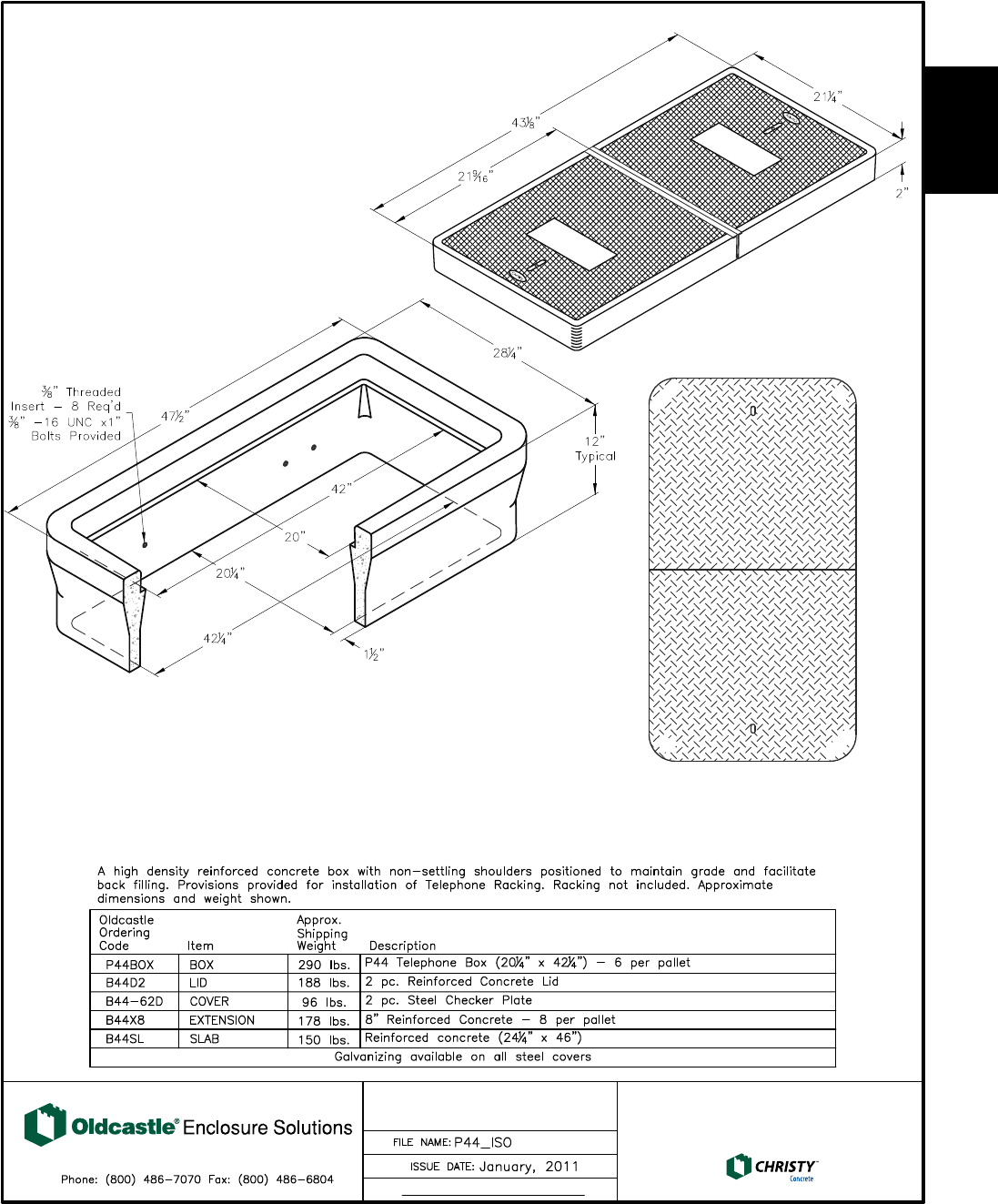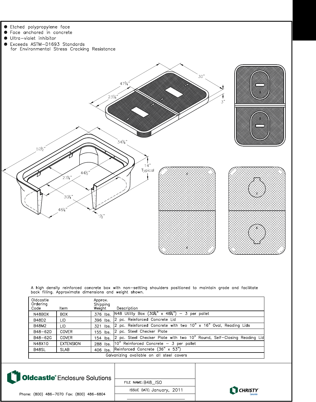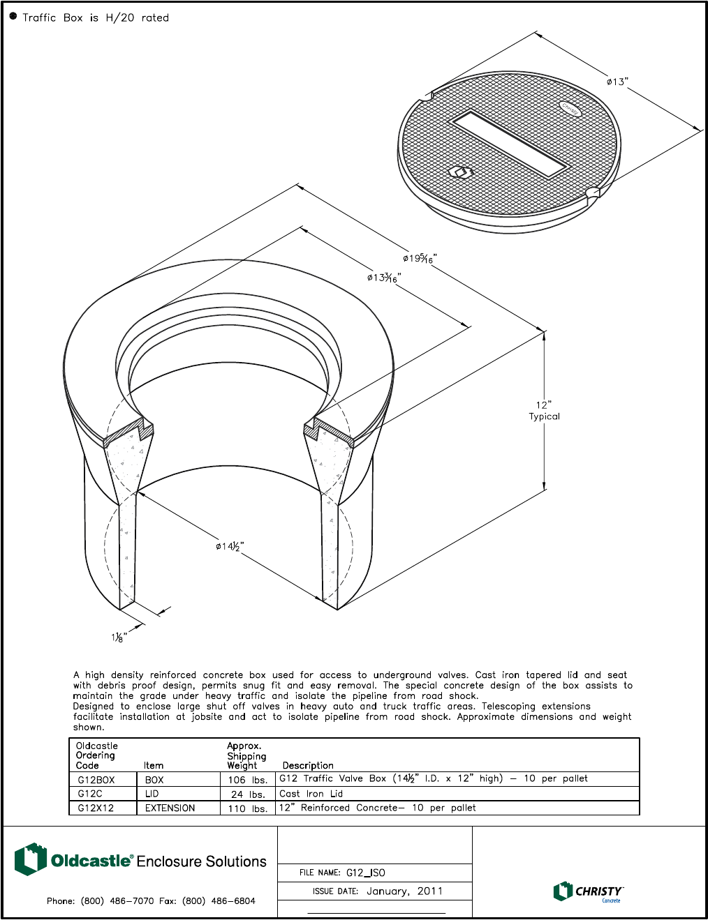 Oldcastle/Christy. Boxes and covers shall be concrete and have a
