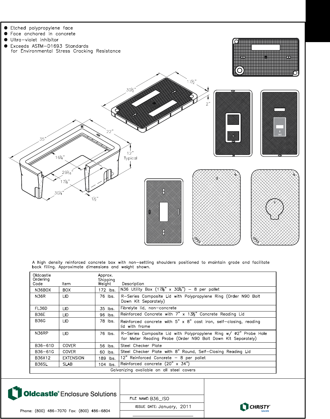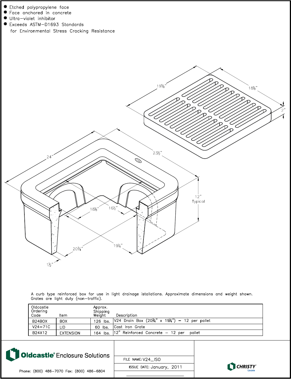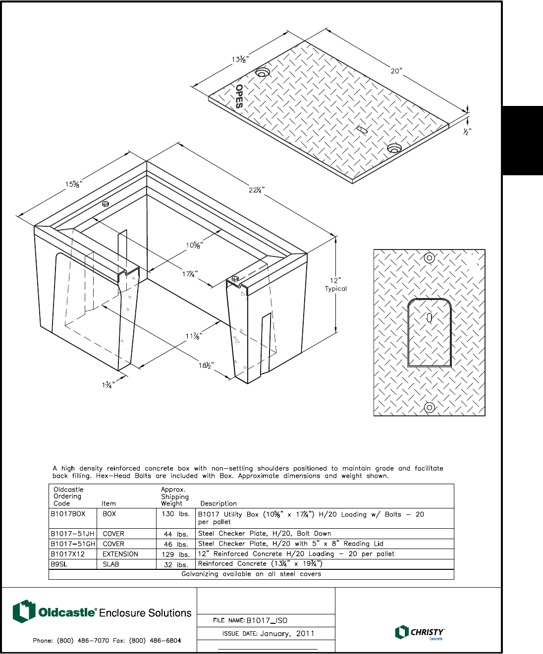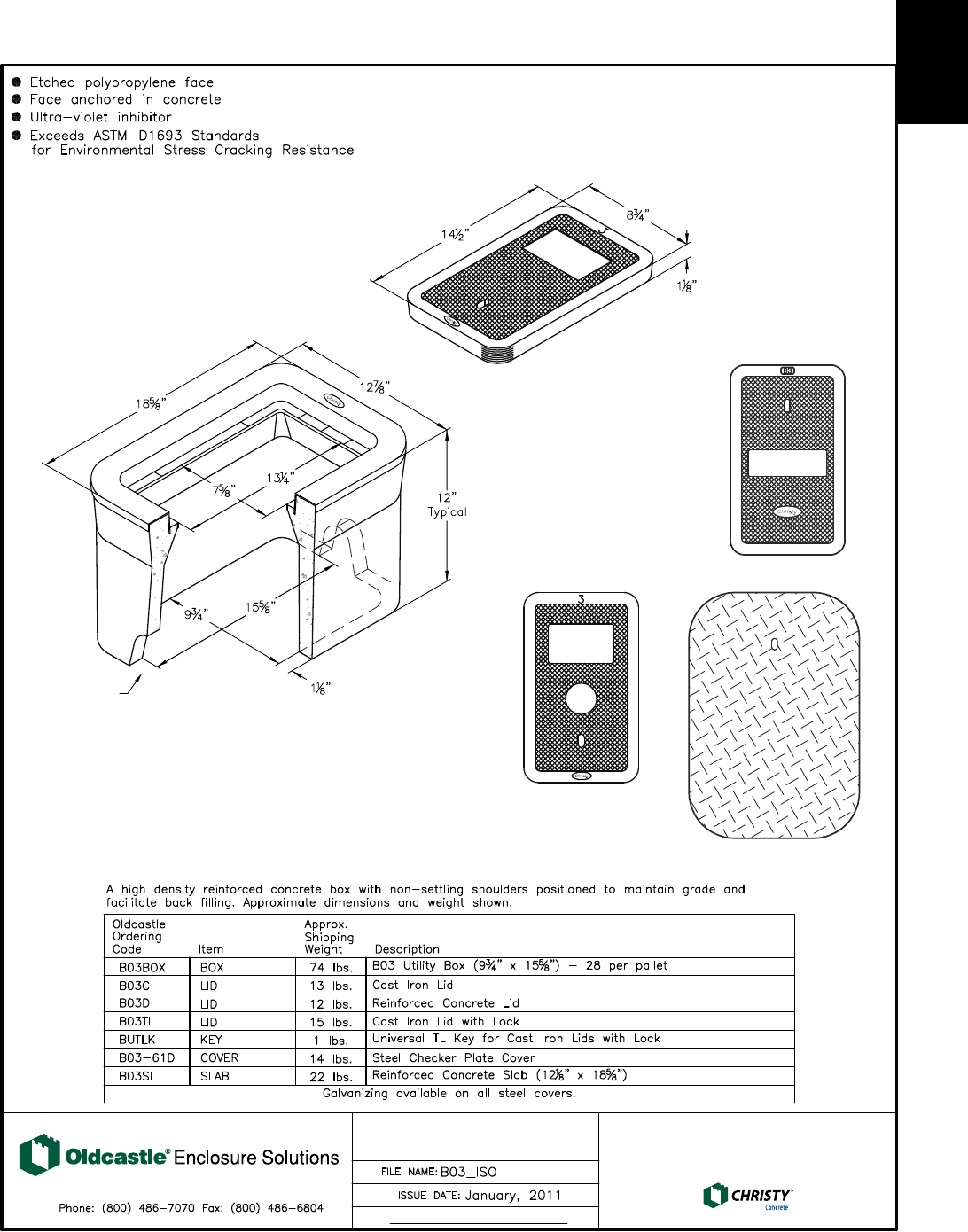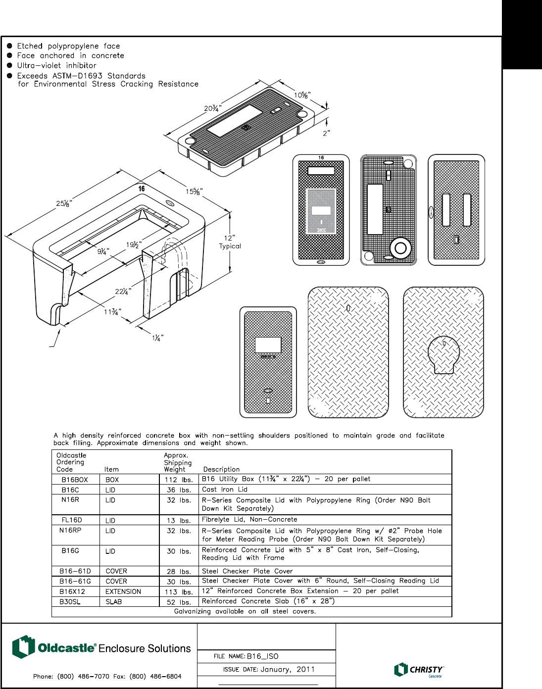 Oldcastle/Christy. Boxes and covers shall be concrete and have a