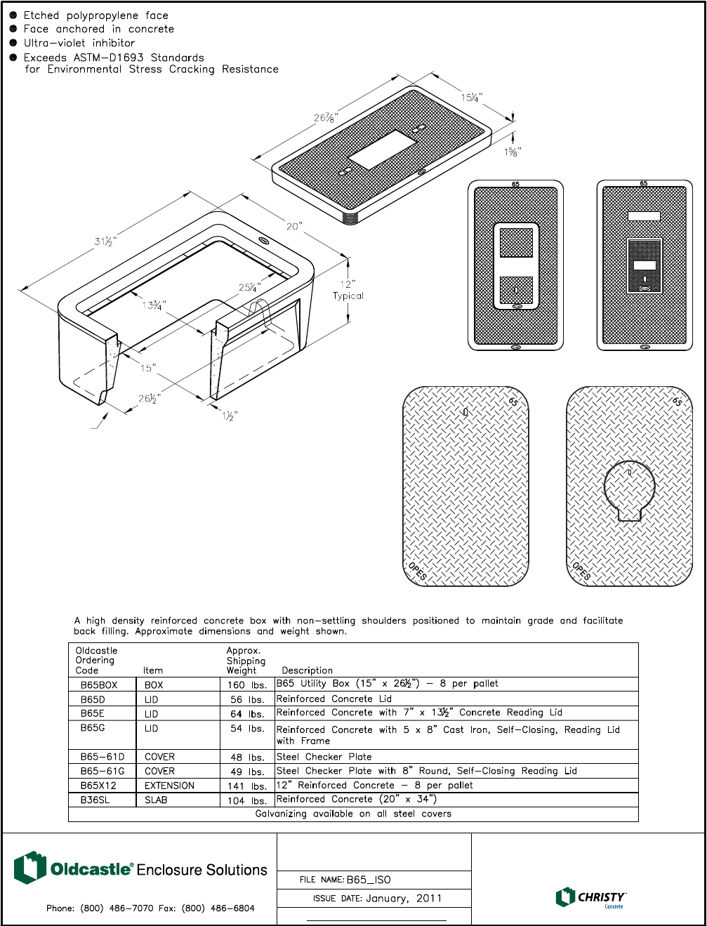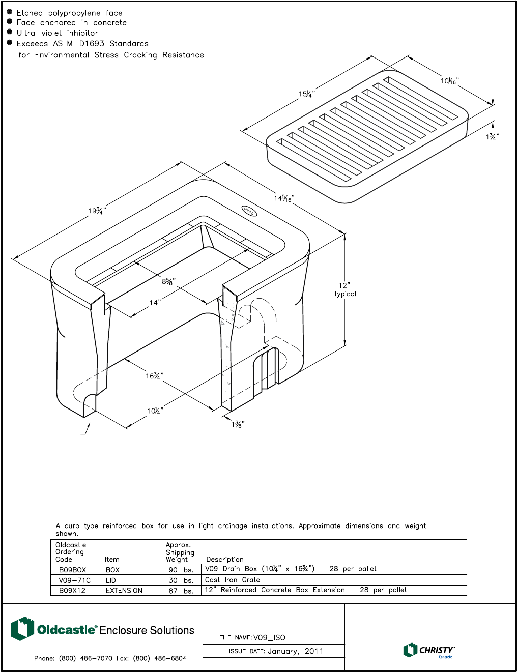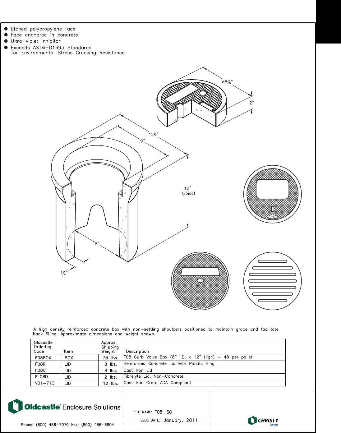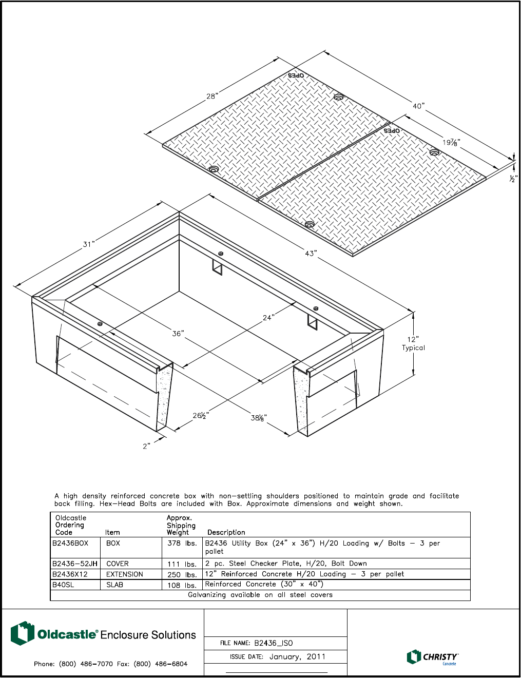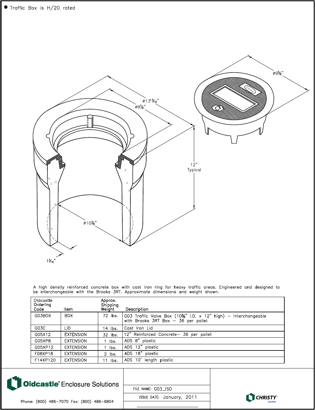 Oldcastle/Christy. Boxes and covers shall be concrete and have a