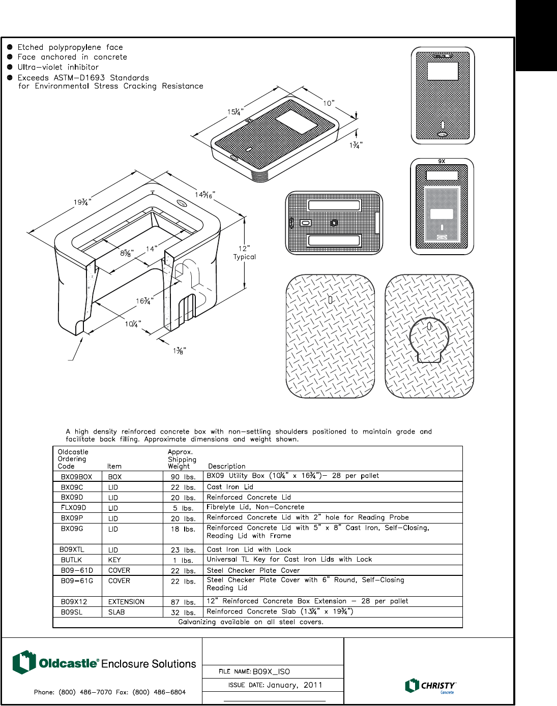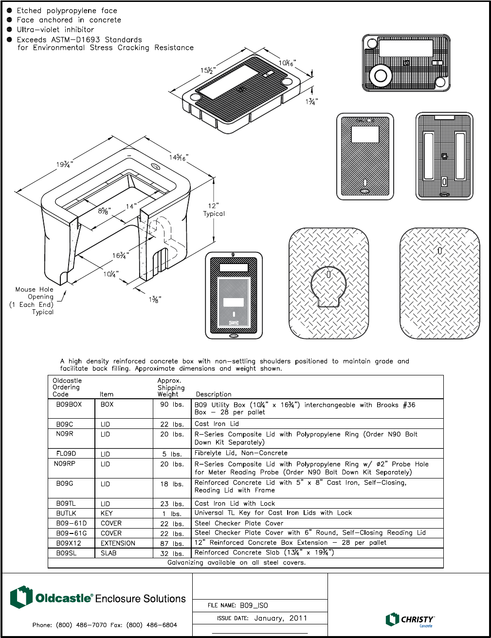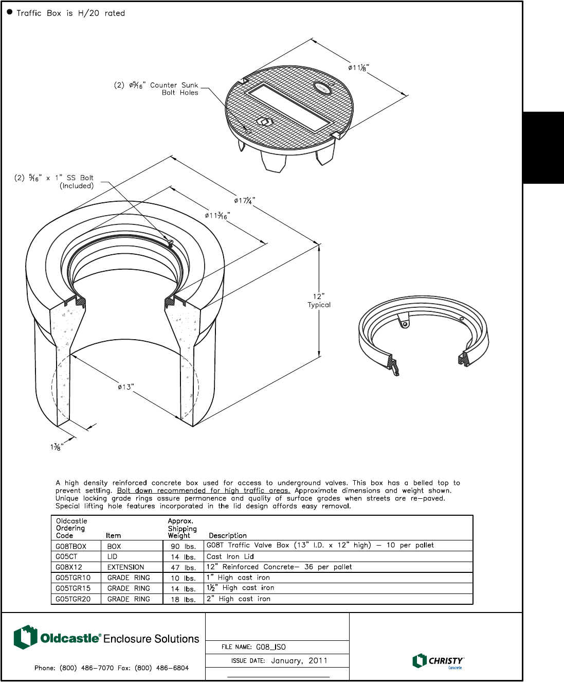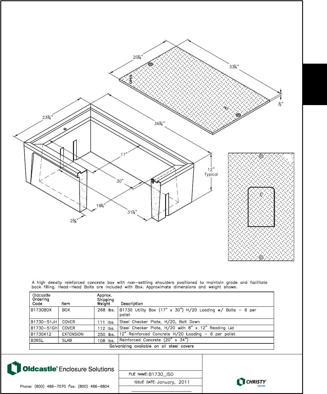 Oldcastle/Christy. Boxes and covers shall be concrete and have a