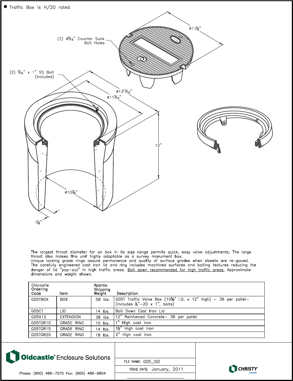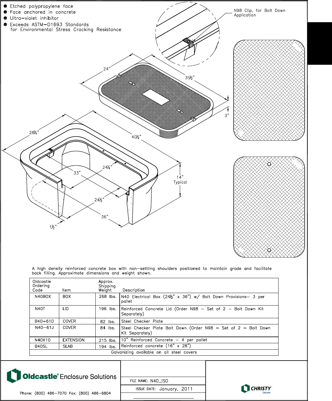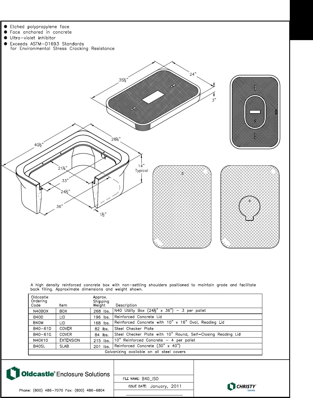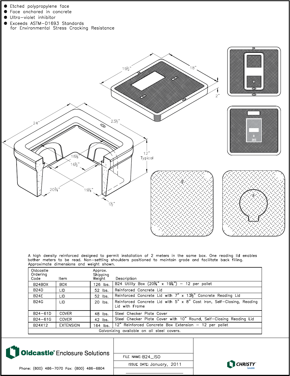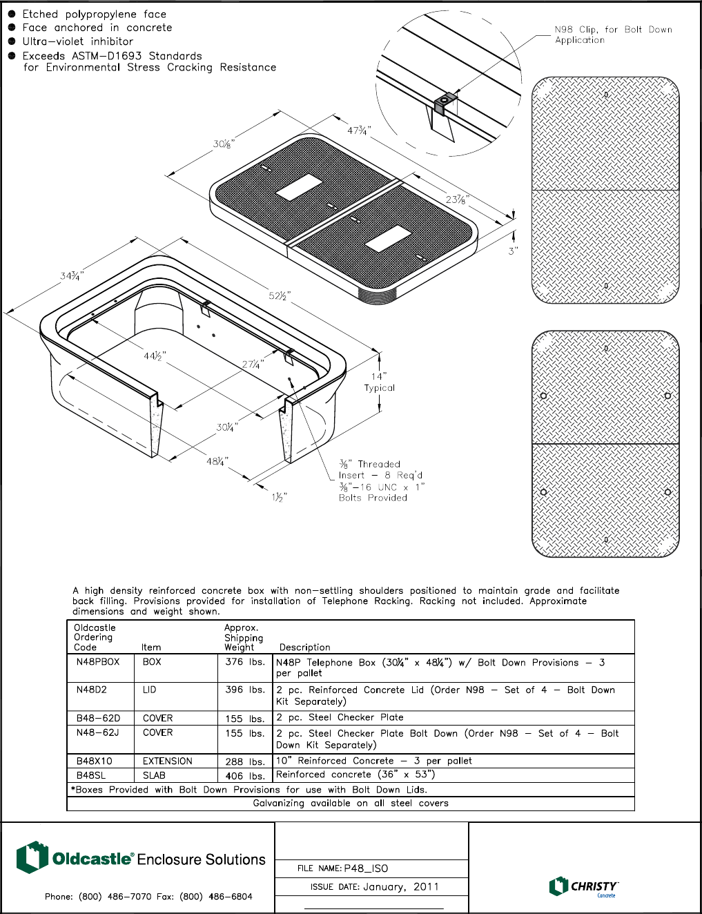 Oldcastle/Christy. Boxes and covers shall be concrete and have a