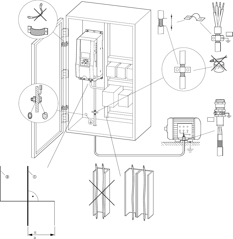 4Fix the grounding cable (item 3) against the backside of the cabinet door through one of the
