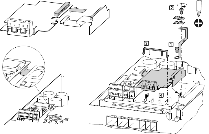 and the screws. The tightening torque to be applied is 1.5 Nm. Connect the data cable (item 3)