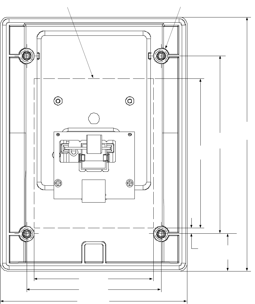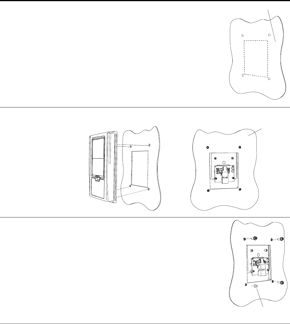2Place the control keypad base (item 1) toward the opening so that the screw holes you made in the cabinet door meet the bushings