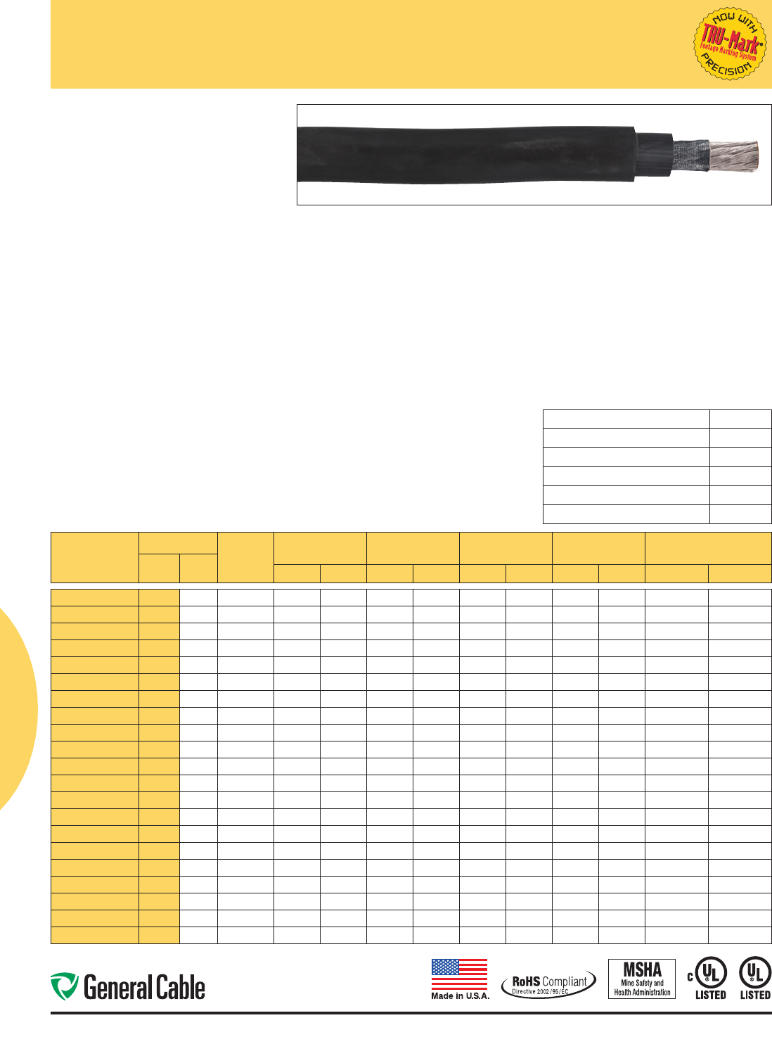- Super Vu-Tron® Single Conductor 90ºC (UL), Type W, 2000 Volt and Type RHH/RHW 600 Volt Portable Power Cable