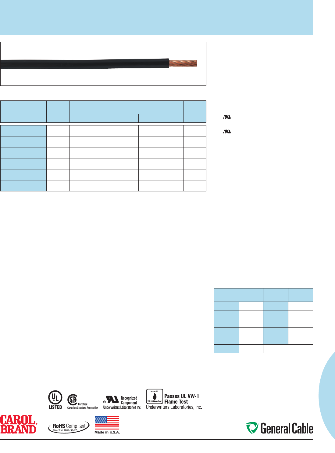 - Heavy Wall UL Types MTW, AWM and NEC Type THW 90ºC, 600 Volt