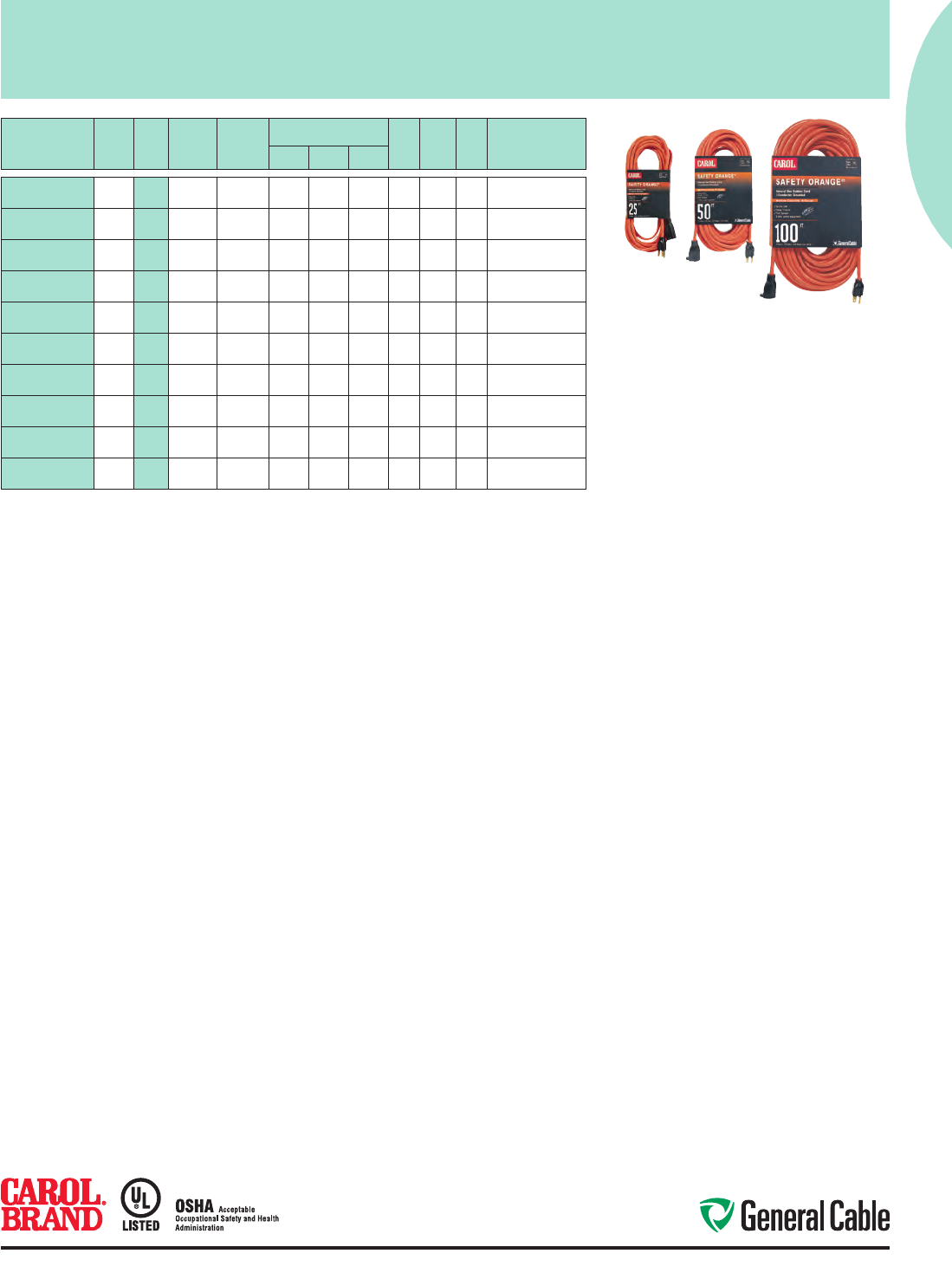 - Safety Orange® Extension Cords 3-Conductor Grounded • Type SJTW • -40ºC to 60˚C • 300 Volts