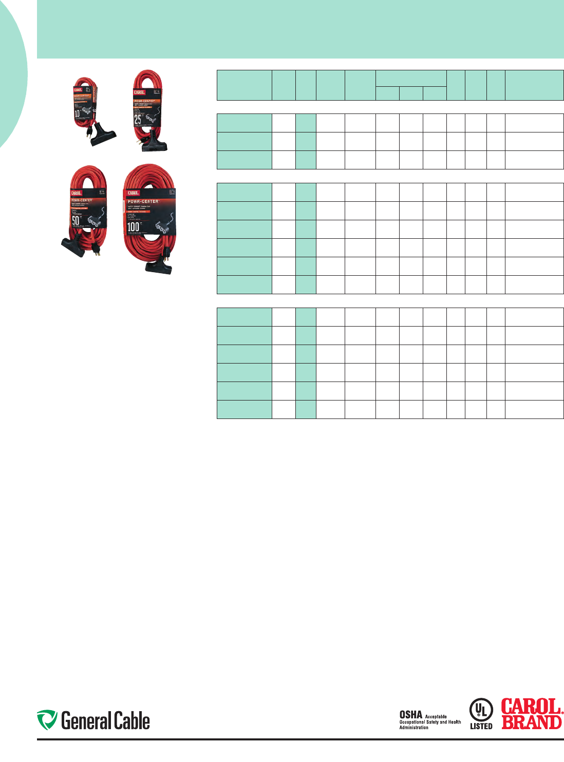 - Carolprene® Jacketed Type SOOW 90ºC, 600 Volt, UL /CSA Portable Cord