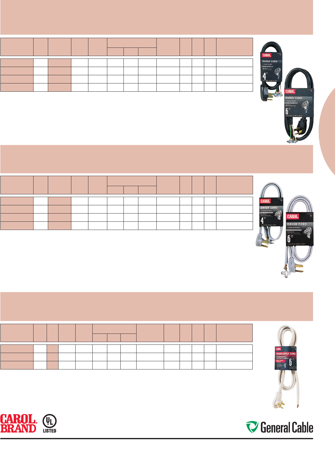 - Range Cords Type SRDT • 50 Amps • 60˚C • 300 Volts