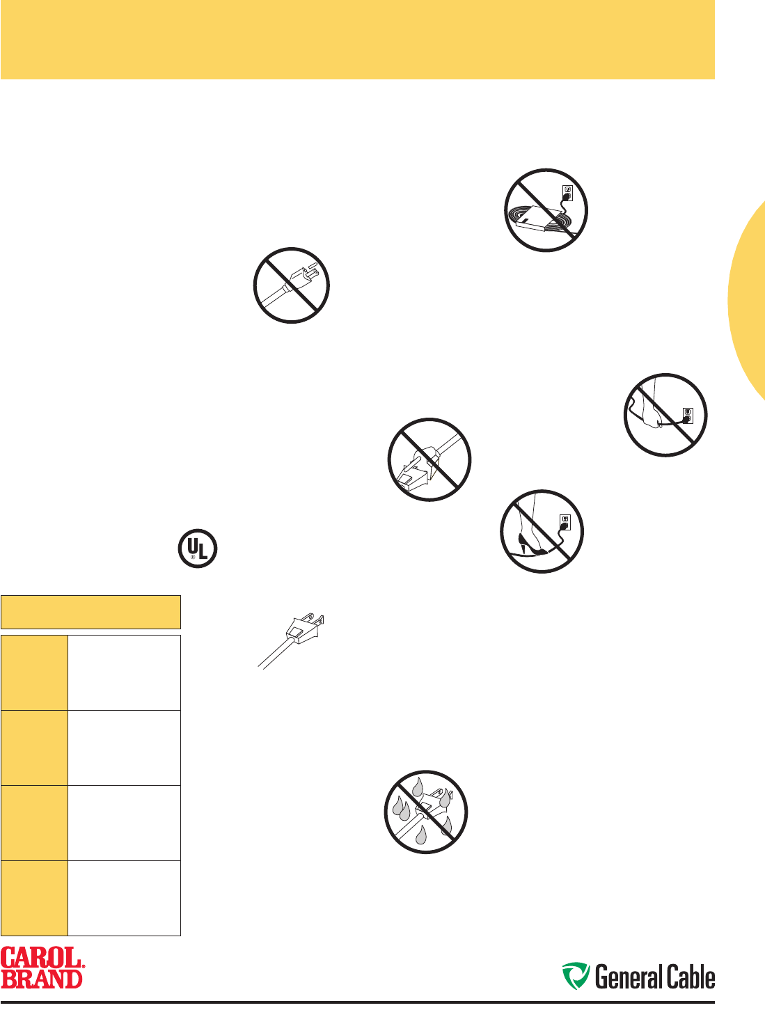 - Carolprene® Jacketed Type SJOOW 90ºC, 300 Volt, UL /CSA Portable Cord