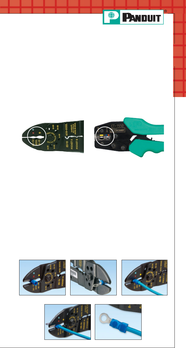 A. Locate terminal in appropriate size color-coded crimp die pocket