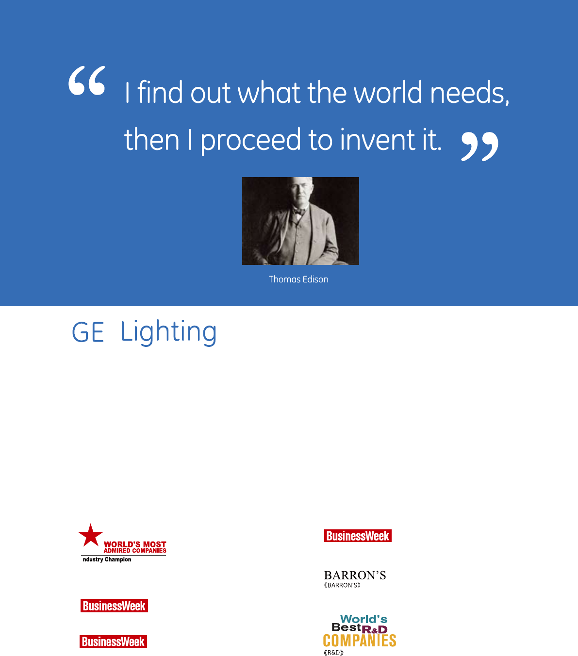 efforts that we inherited from our founder, Thomas Edison. GE Lighting divides it's business into three areas, Light Emitting