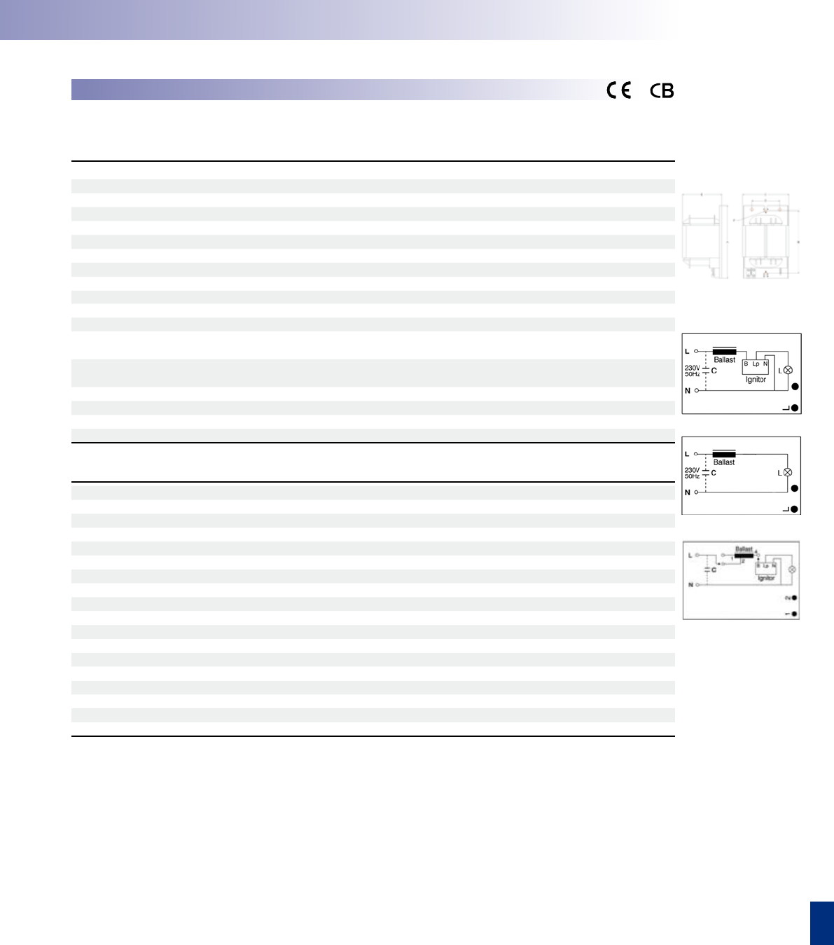 range of incandescent and uorescent lamp types.