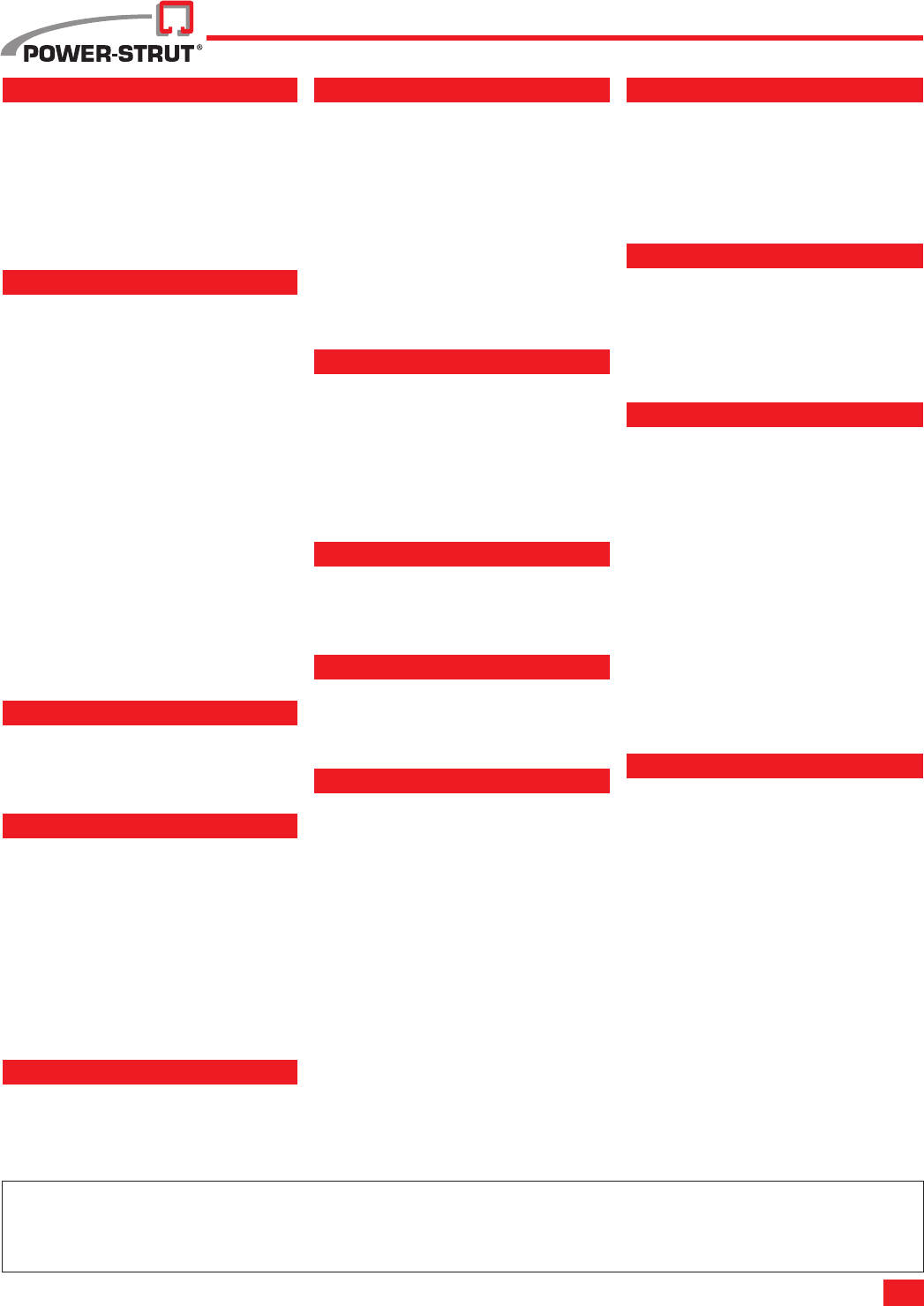 WARNING: Power-Strut products are carefully designed and manufactured to the listed standards, as applicable.