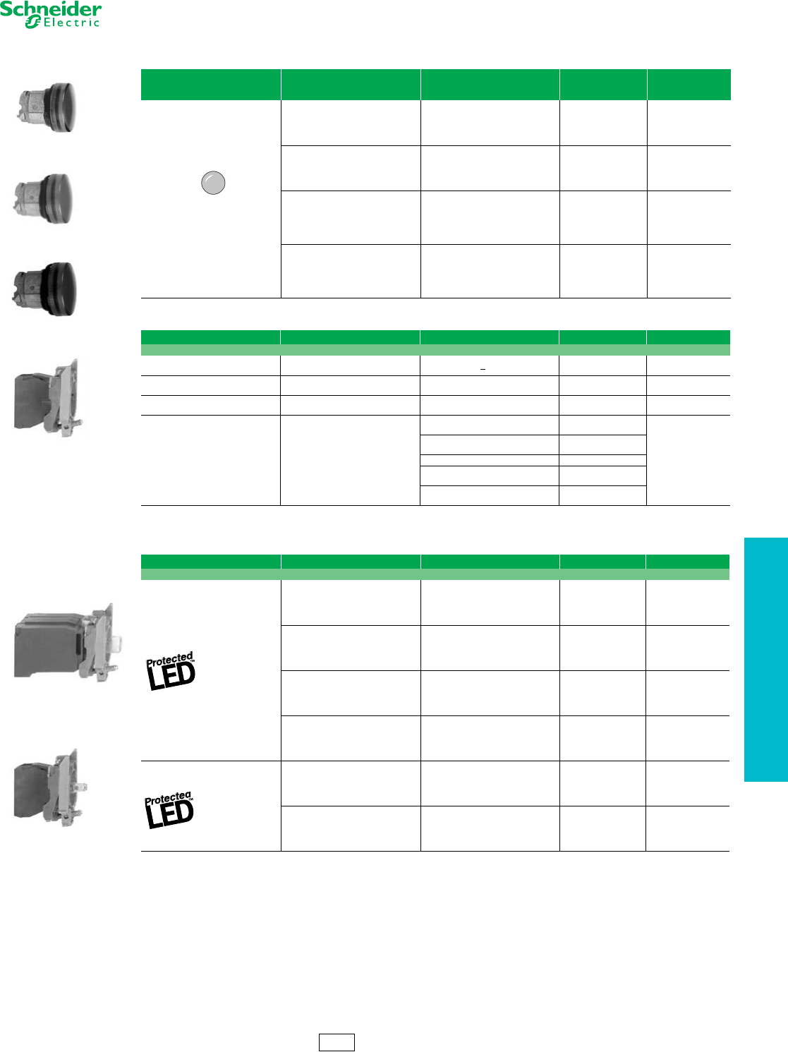 The Compact Pilot Light ranges include the XVL miniature LED type; the Type O low-