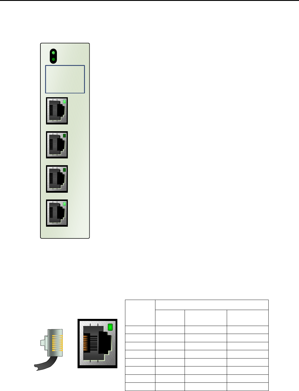 Each port is a standard RJ-45 female connector with the following pin assignments. For MODBUS applications,