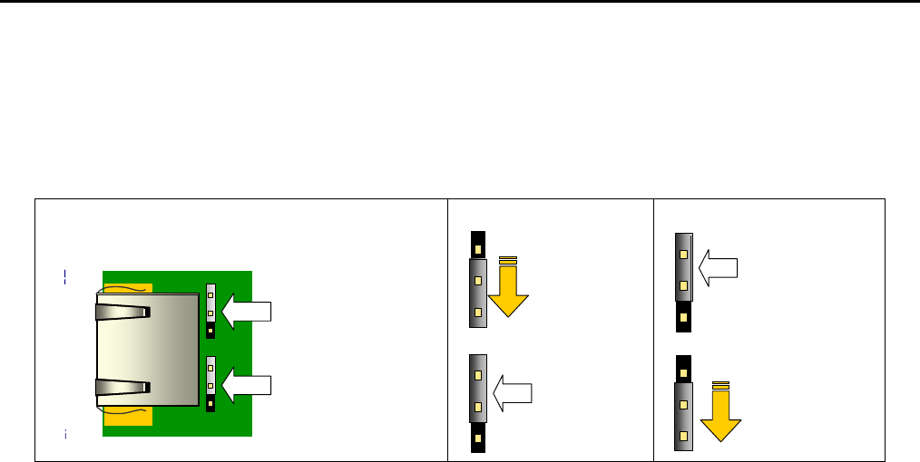 2. With the module oriented as shown, move either the upper or lower jumper.