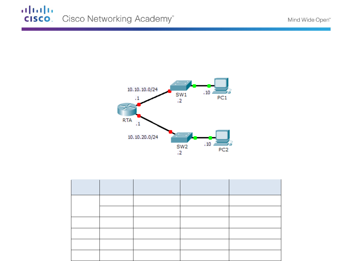 In this activity, you will configure RTA with basic settings, including IP addressing. You will also configure
