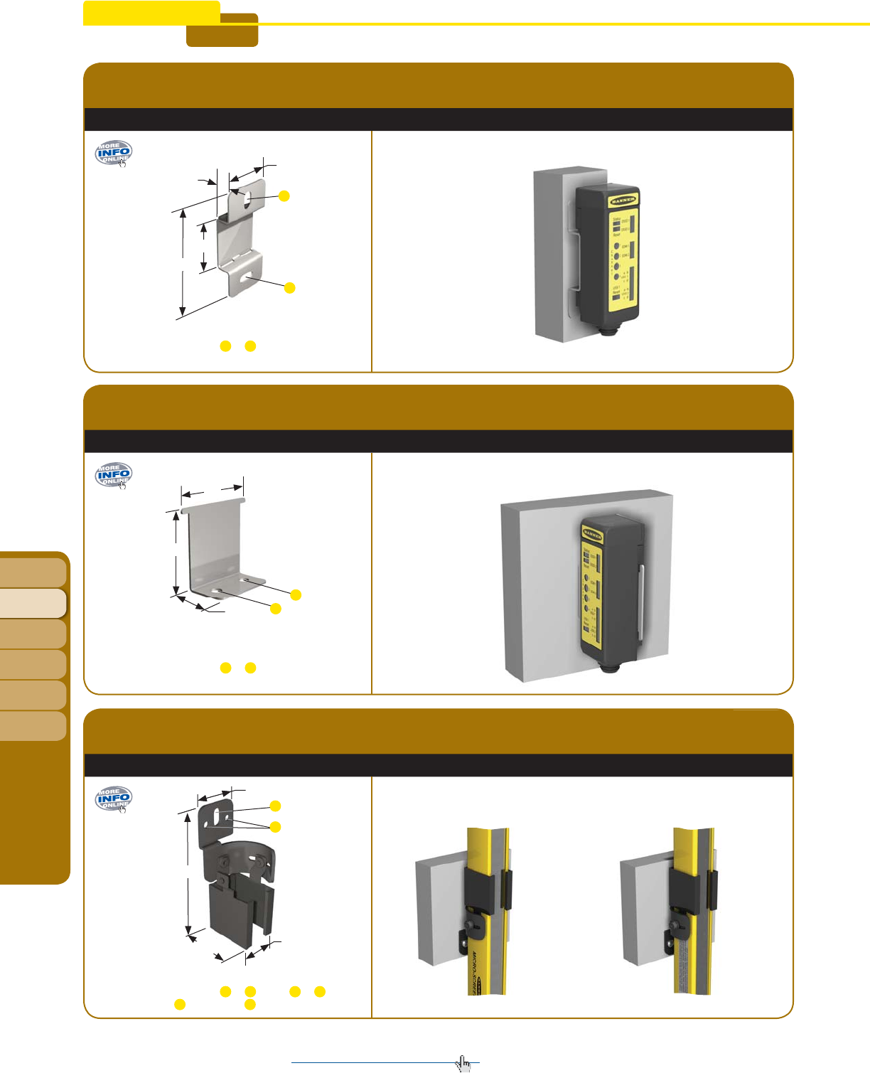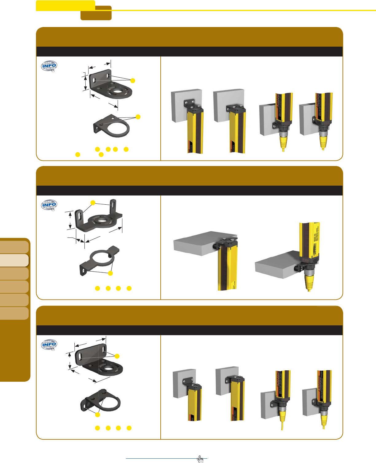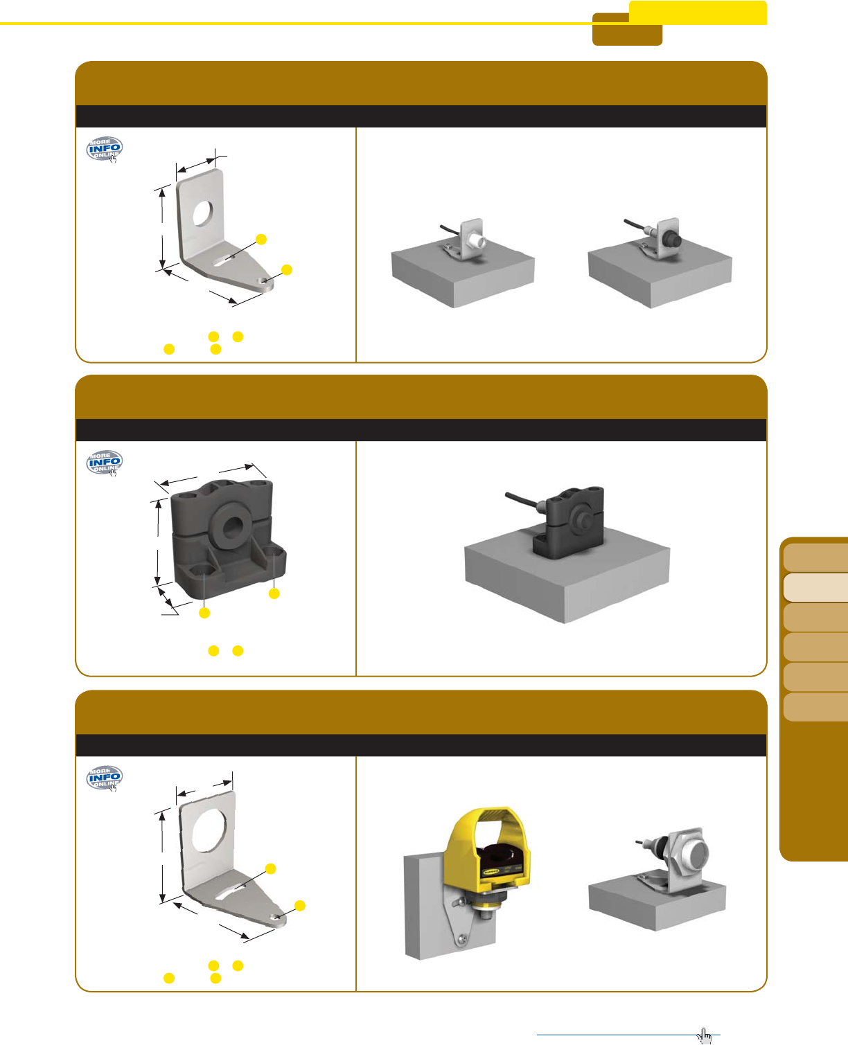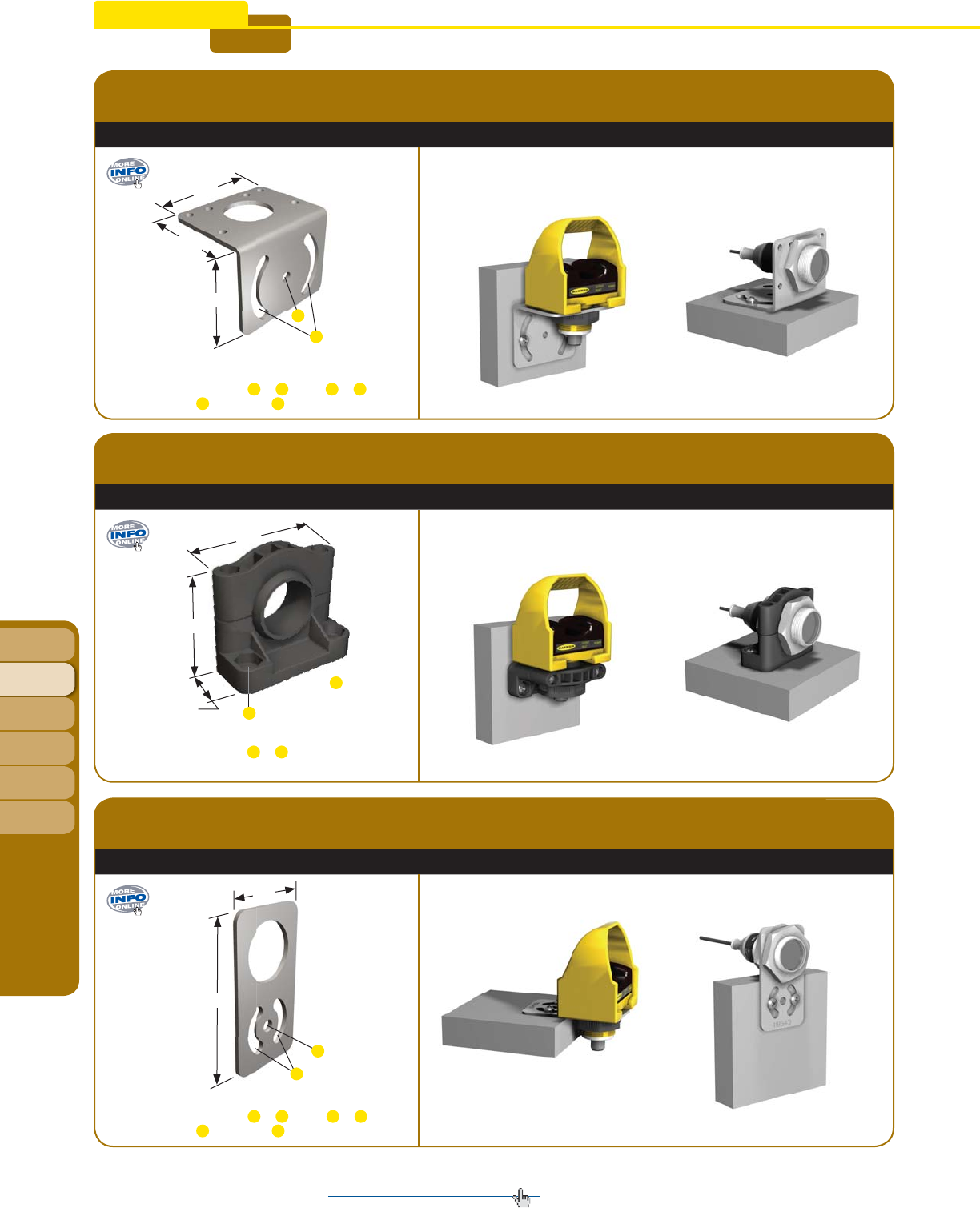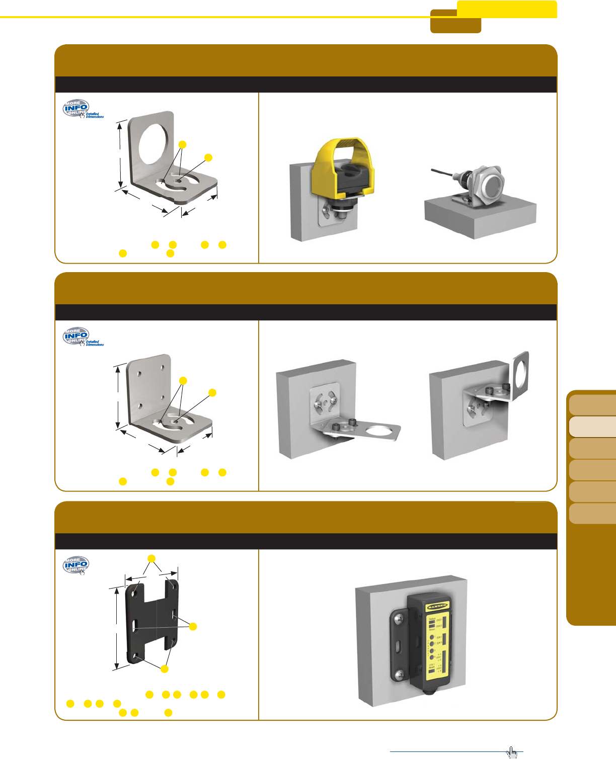 • Broad offering of bracket styles makes it easy to install sensors vertically, horizontally, or diagonally.