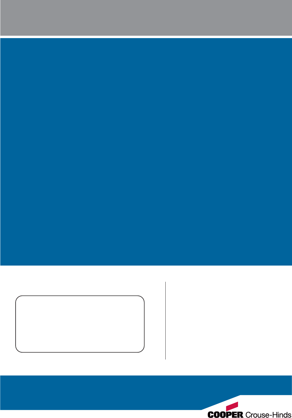 If further assistance is required, please contact an authorized Cooper Crouse-Hinds Distributor,