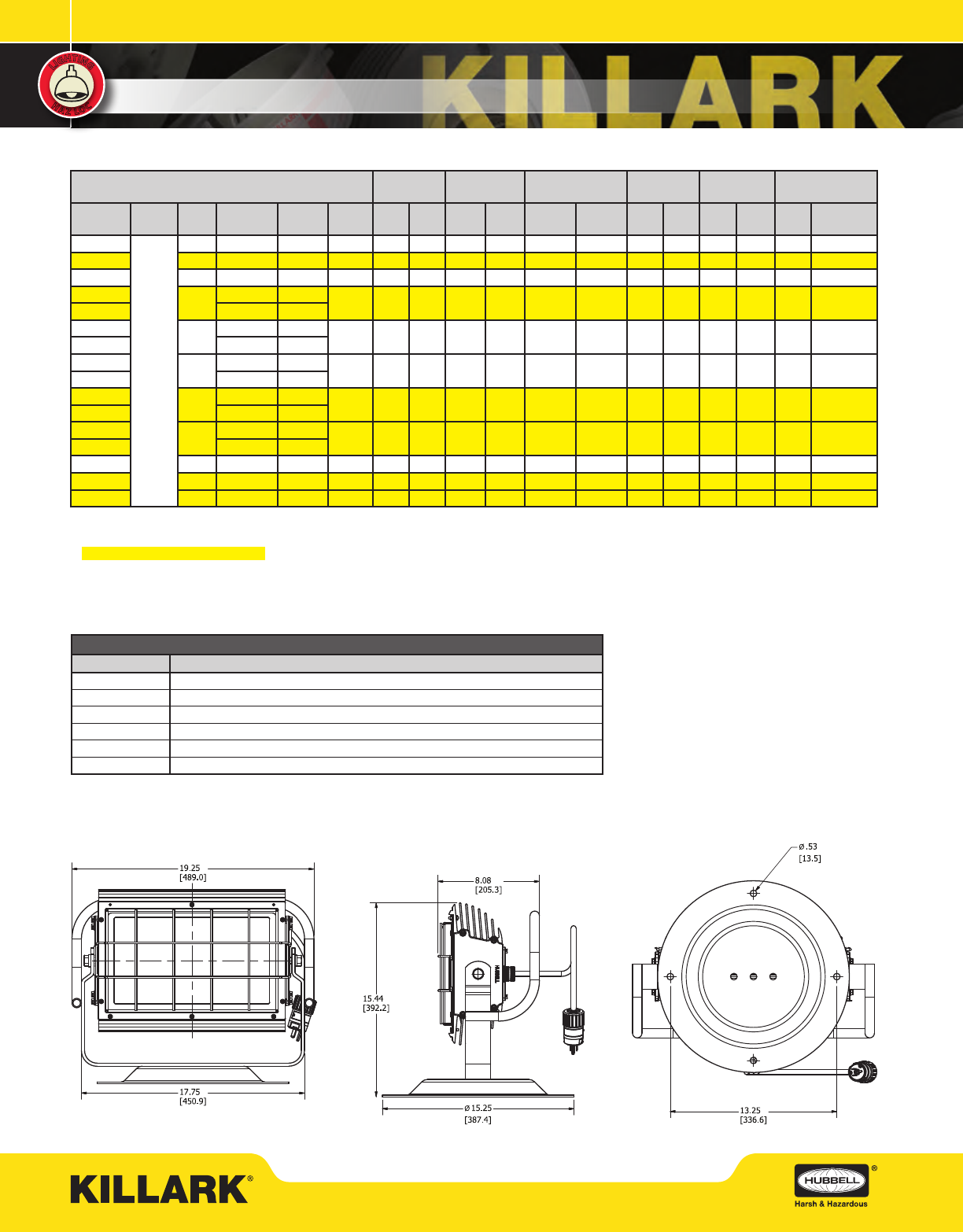 SEE WWW.HUBBELL-KILLARK.COM LIGHTING SOFTWARE FOR LATEST LED PHOTOMETRY L3
