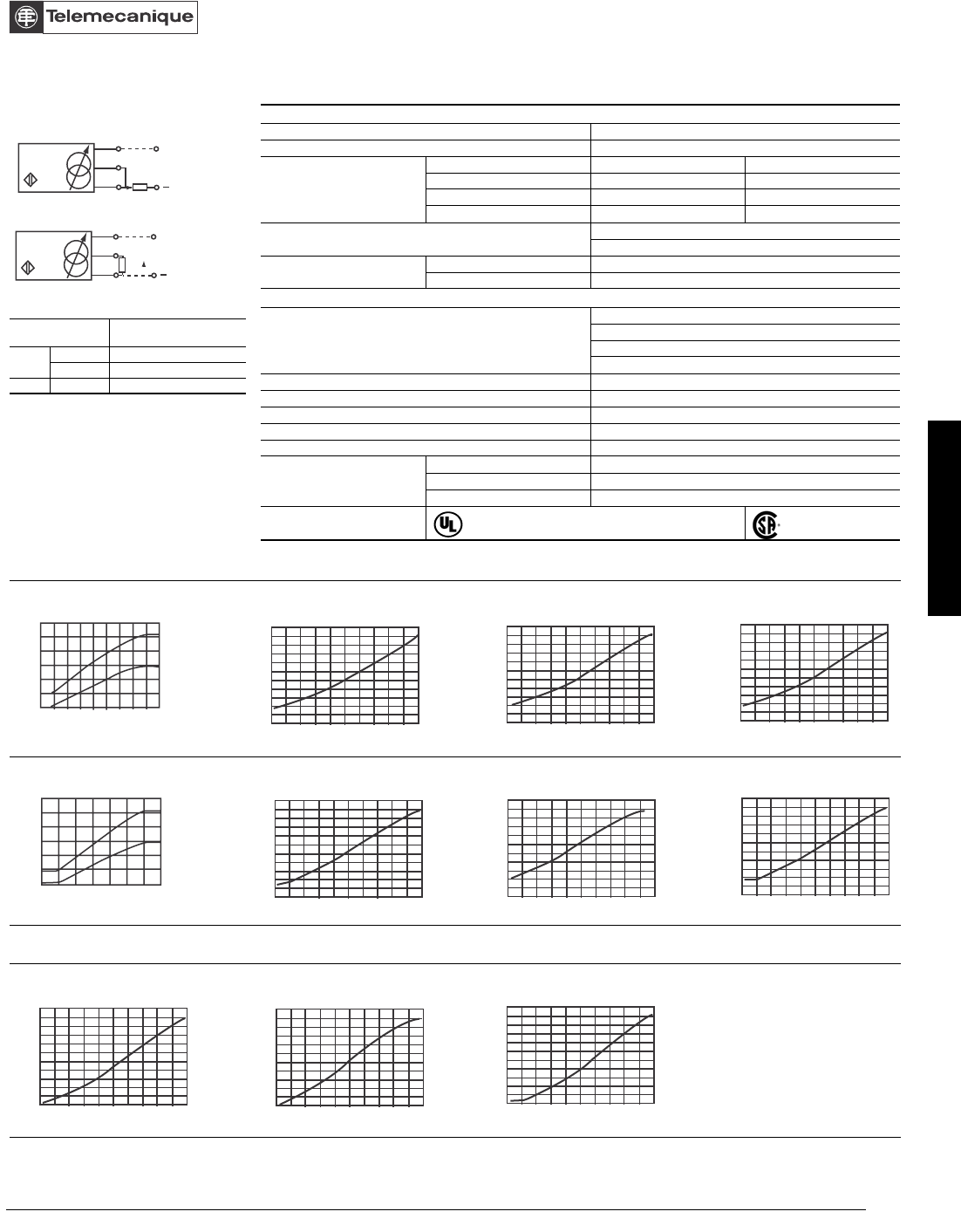 Output Curves 4 to 20 mA, 2 wire connection (cylindrical models)