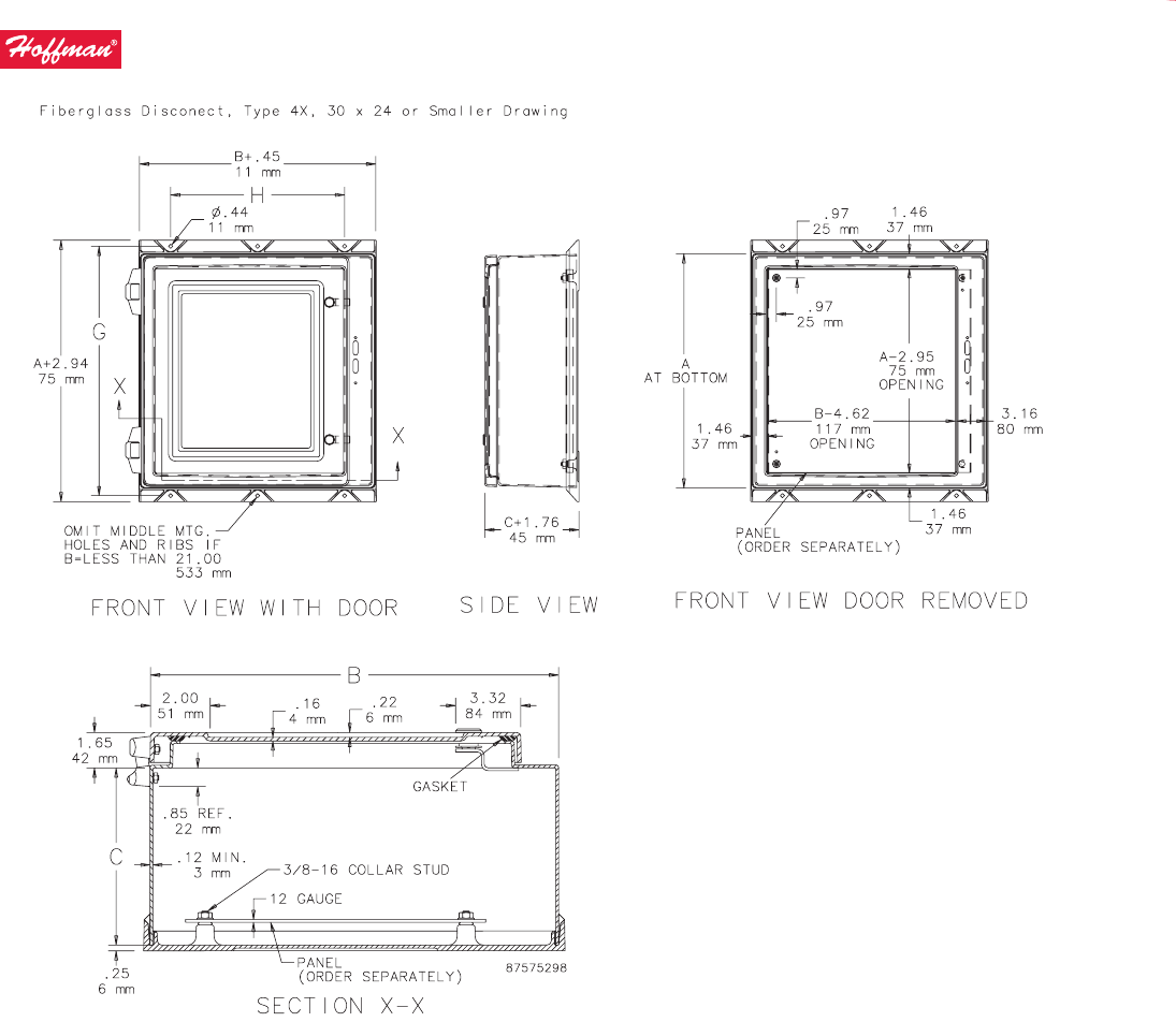 Blank Adapter Plates, Stainless Steel Used to cover ange cutouts in disconnect enclosures when