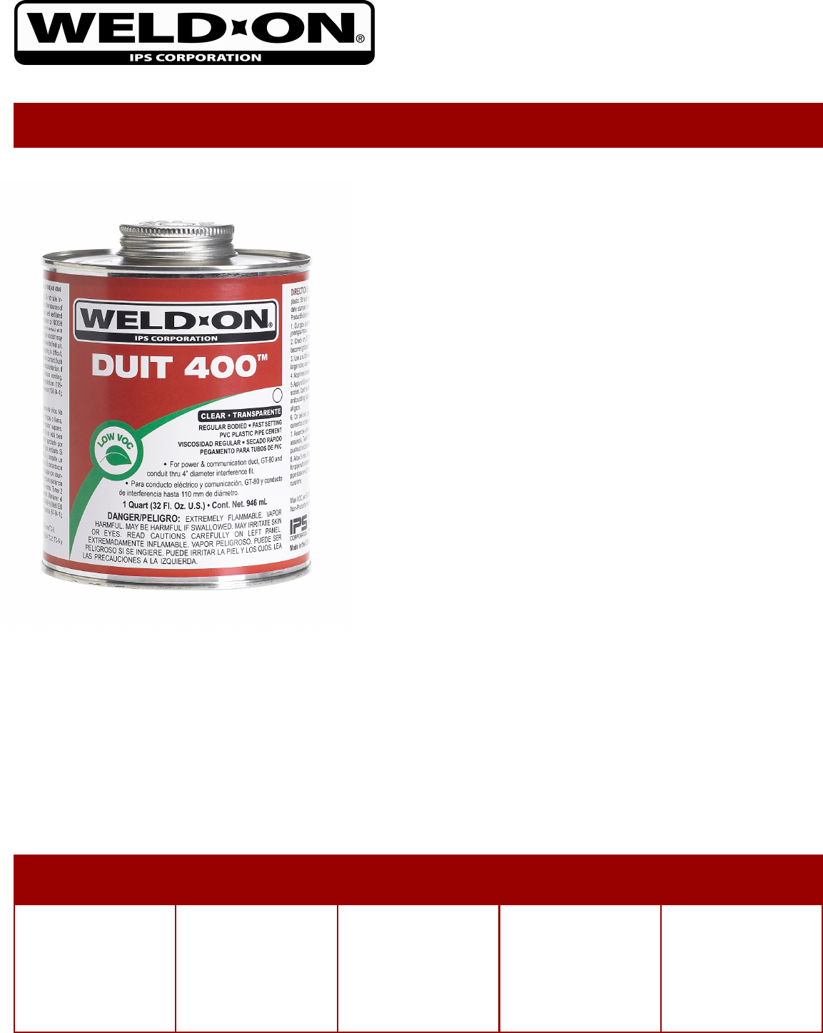 DUIT™ 400™ LOW VOC PVC SOLVENT CEMENTS