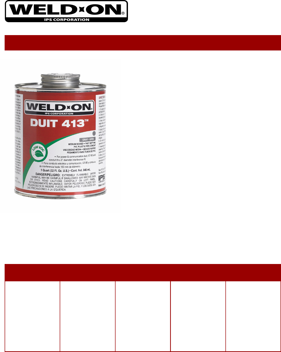 DUIT™ ELECTRICAL / UTILITY PVC SOLVENT CEMENTS BY WELD-ON