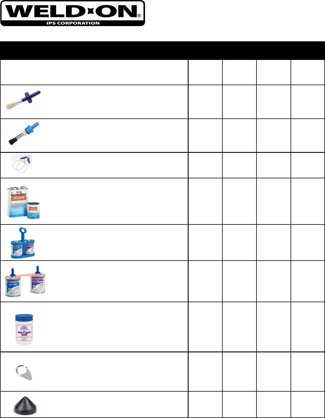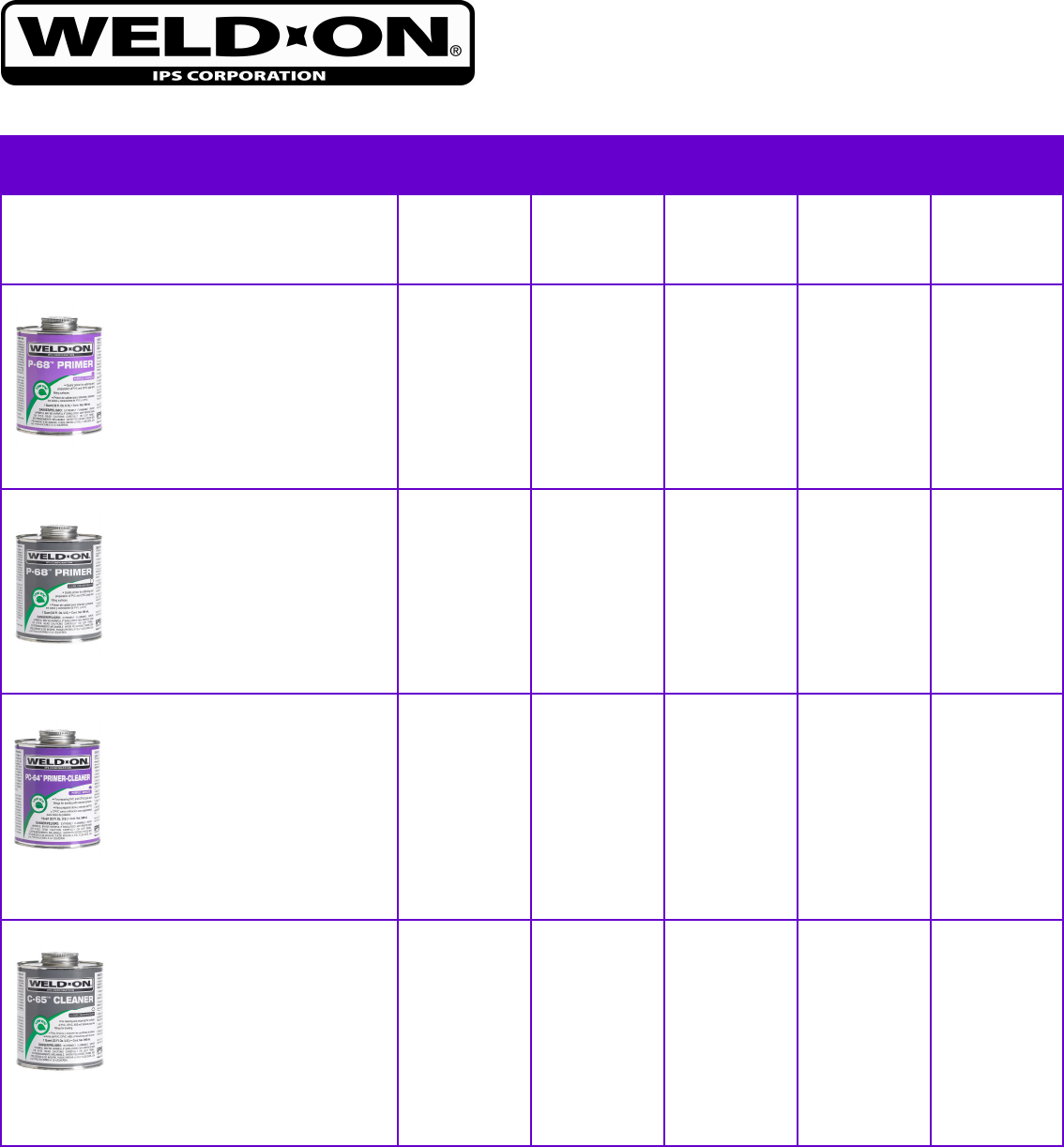 (PVC, CPVC, ABS), primers & sealants. Also re-