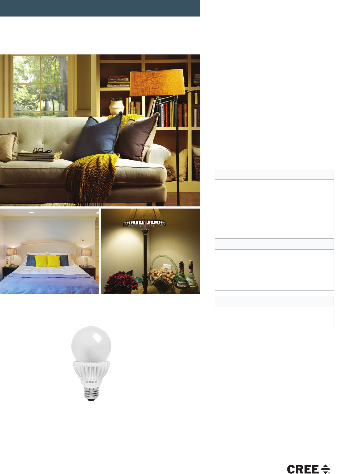 See www.cree.com/lighting for warranty and specifications. Cree®, TrueWhite®, Cree TrueWhite®, the Cree