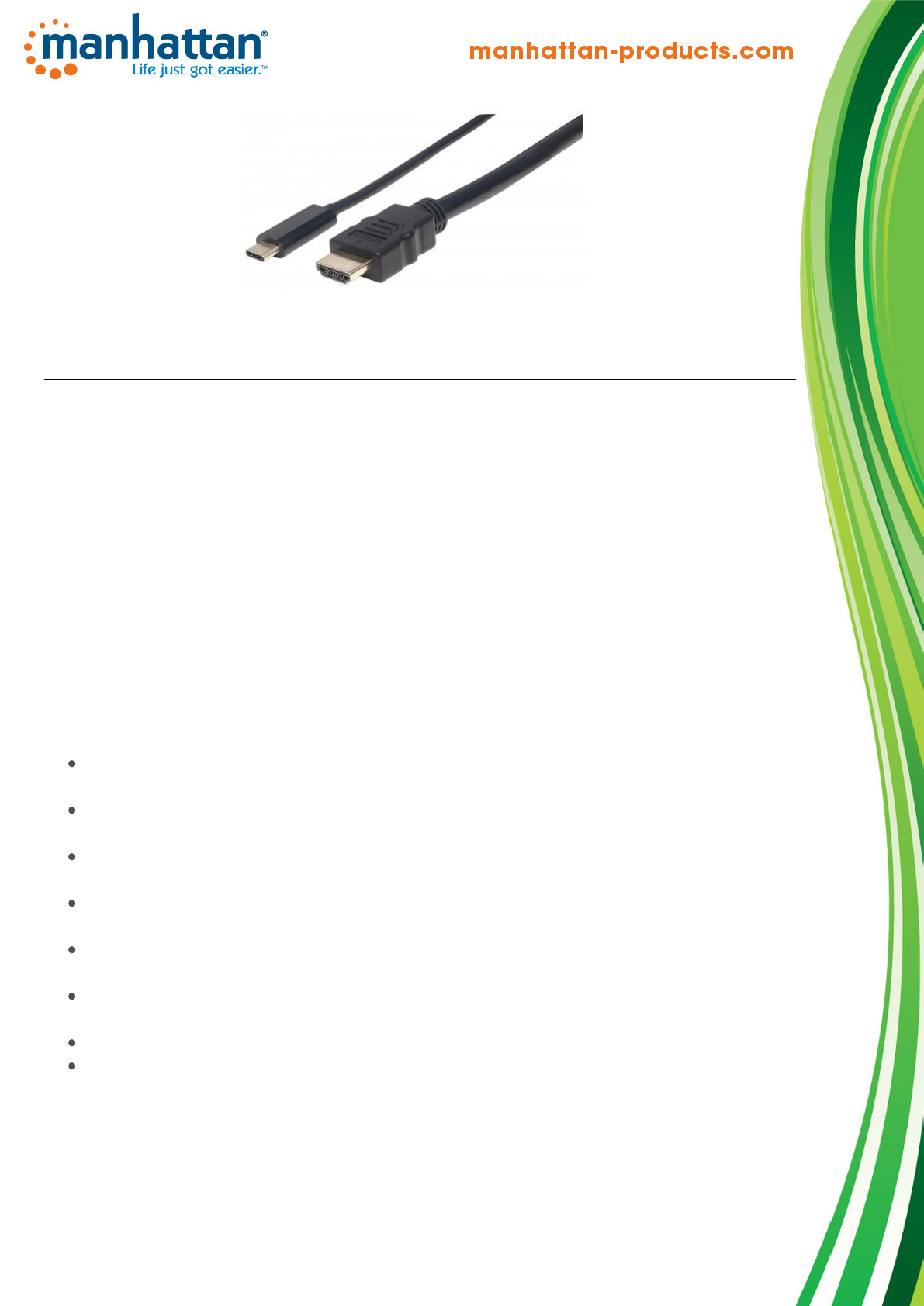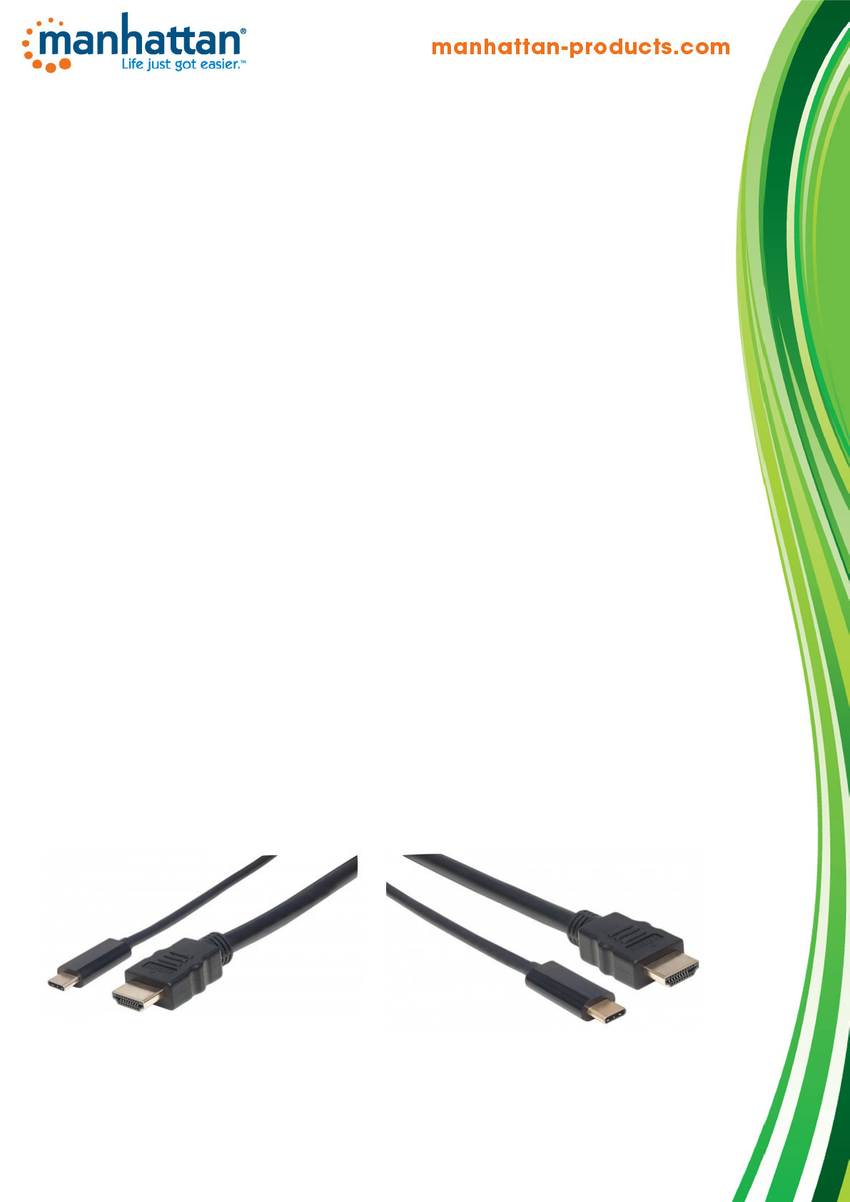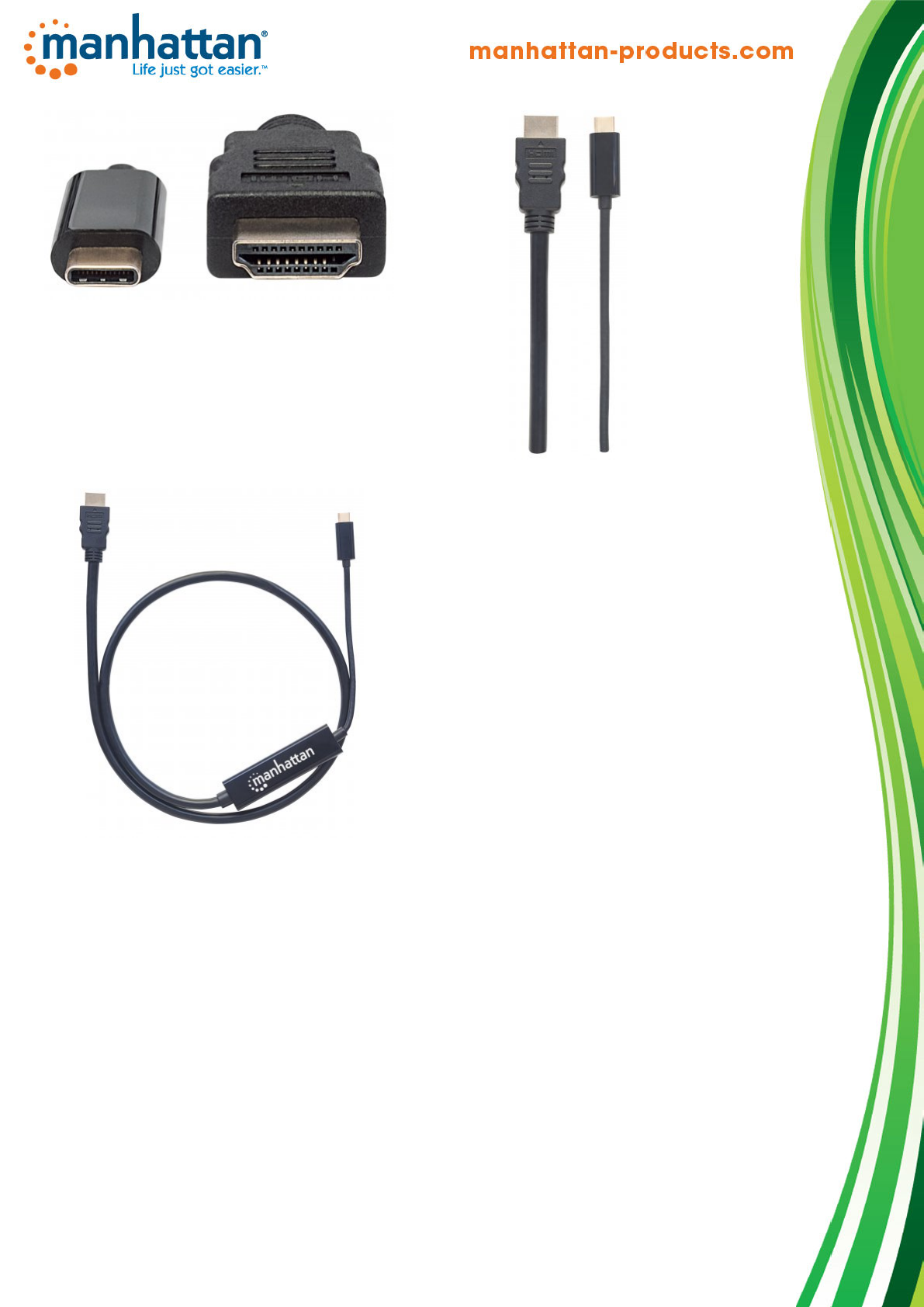 The Manhattan USB-C to HDMI Adapter Cable transmits USB audio/video signals to HDMI