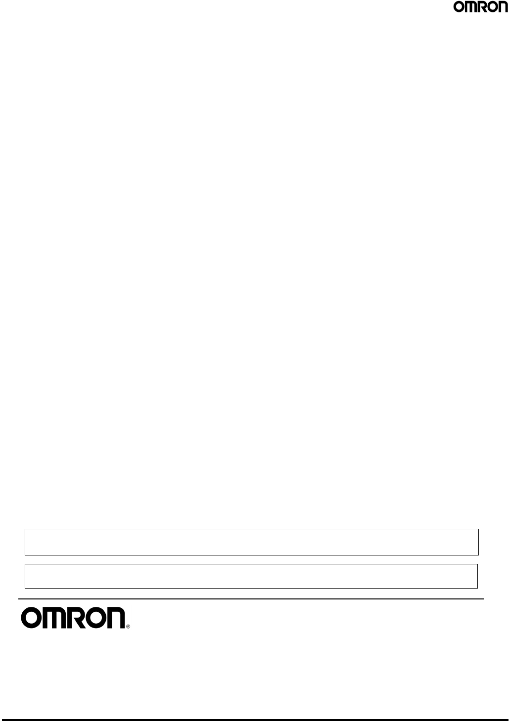 Complete “Terms and Conditions of Sale” for product purchase and use are on Omron’s website