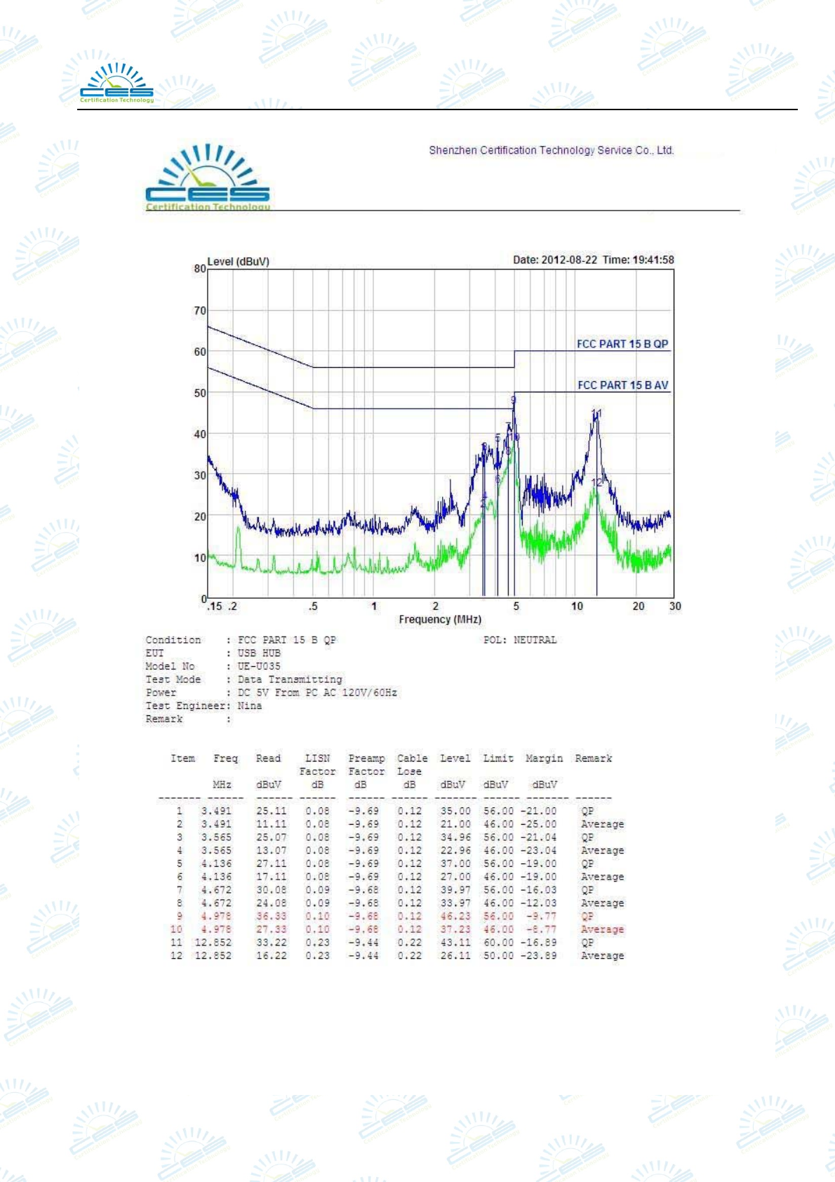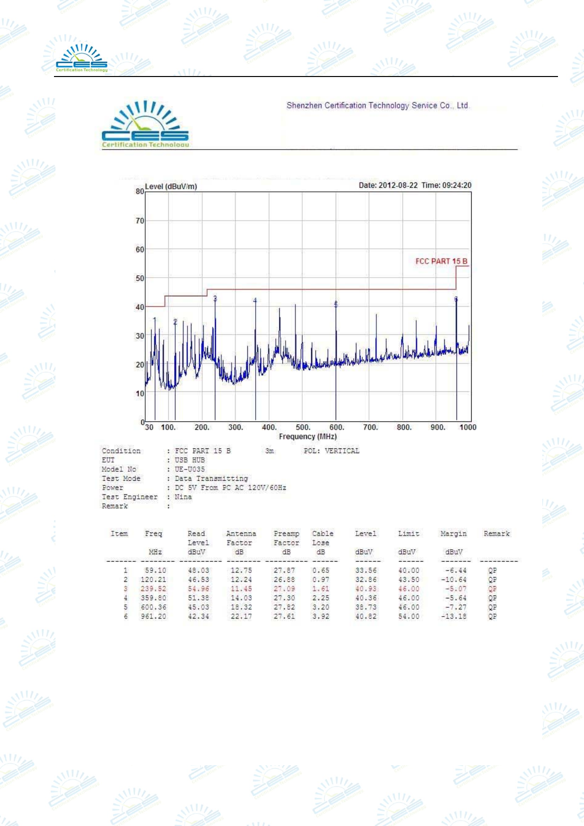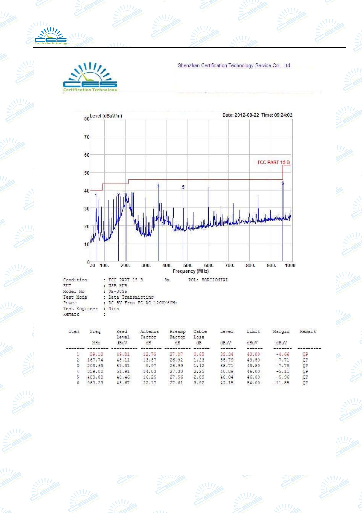emissions. The test results are contained in this test report and Shenzhen Certification Technology
