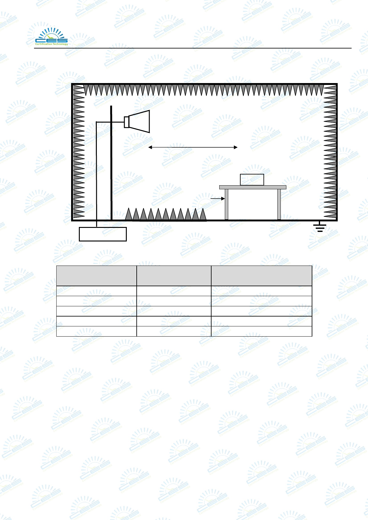 The EUT was placed on a non-metallic table, 80 cm above the ground plane inside a