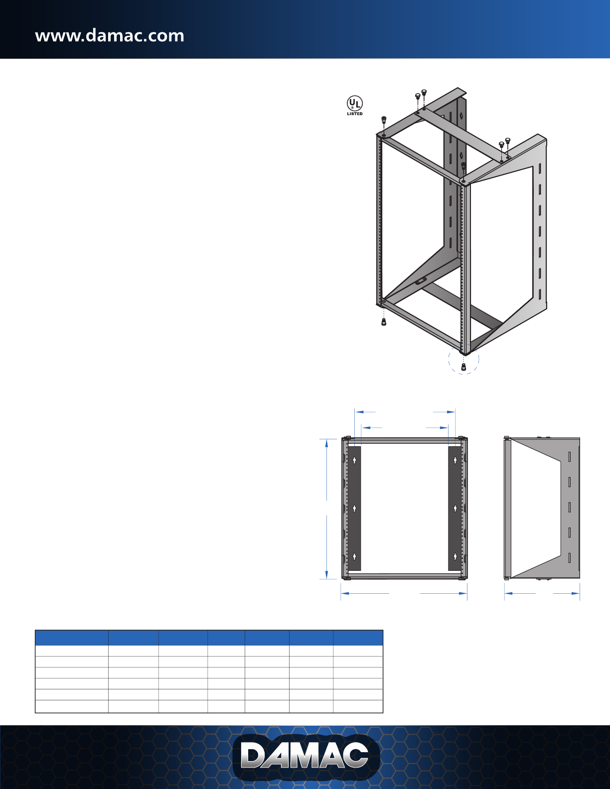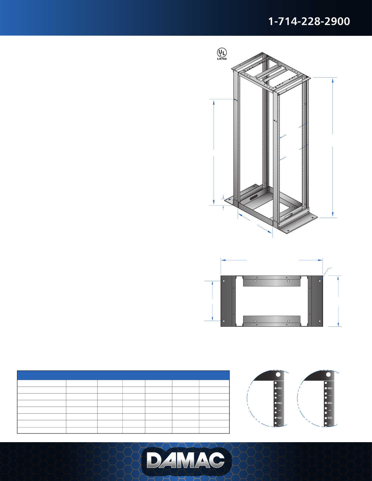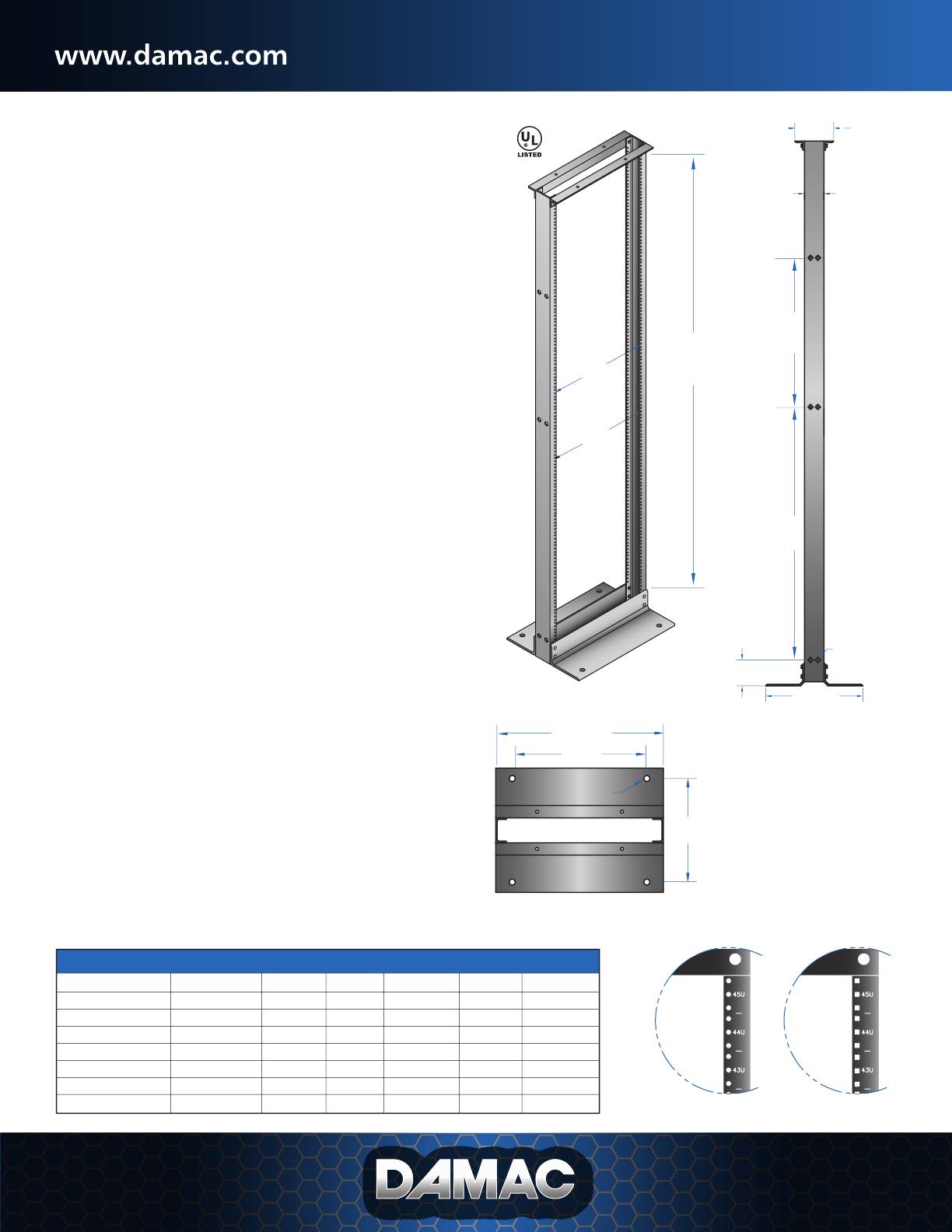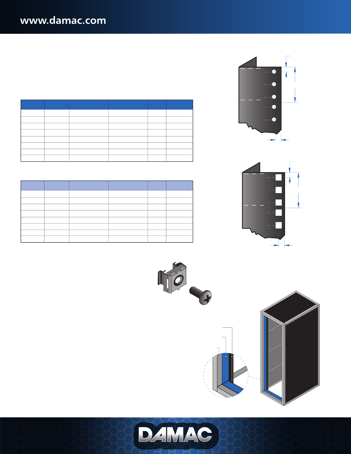 • Two sets of mounting rails w/ EIA spacing: 5/8 x 5/8 x 1/2