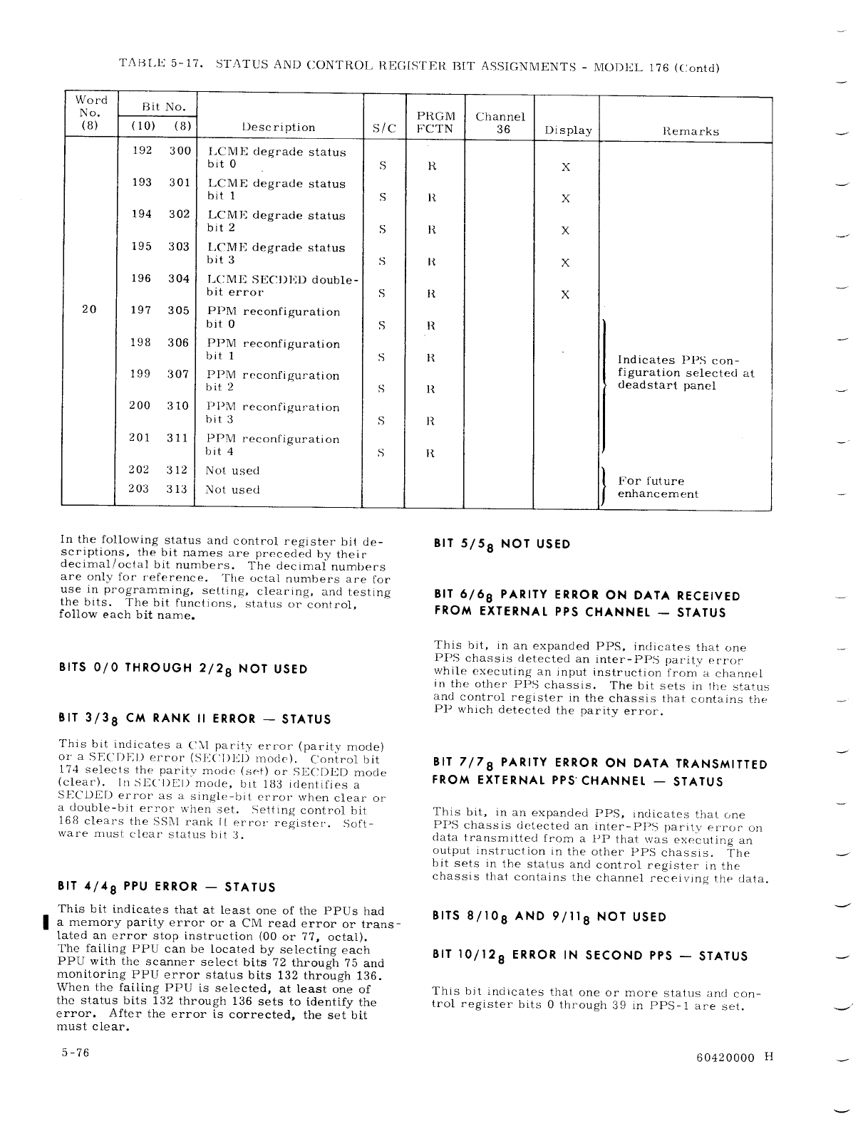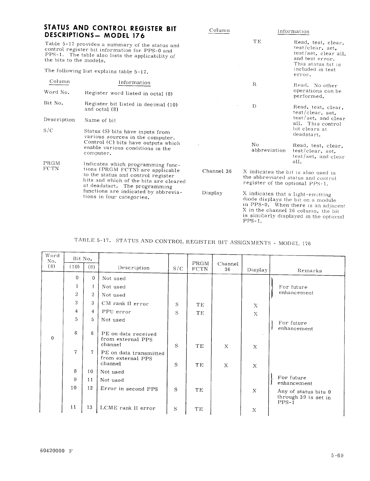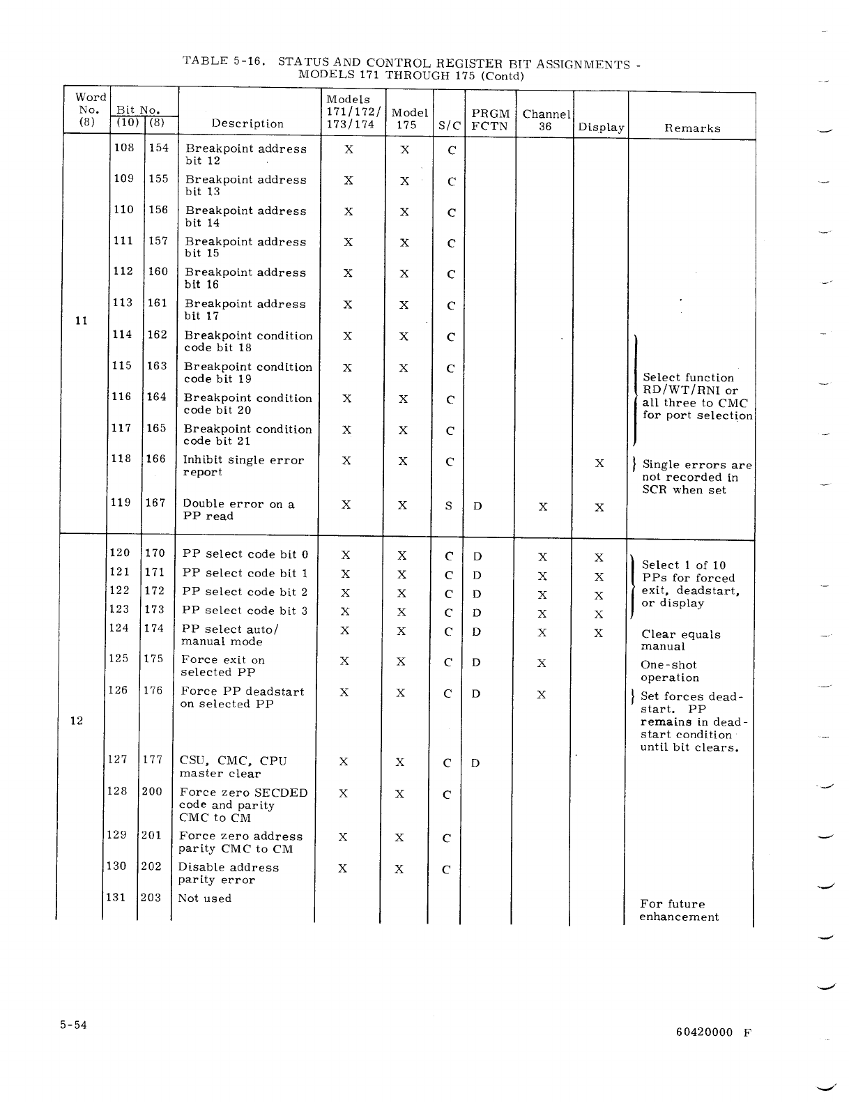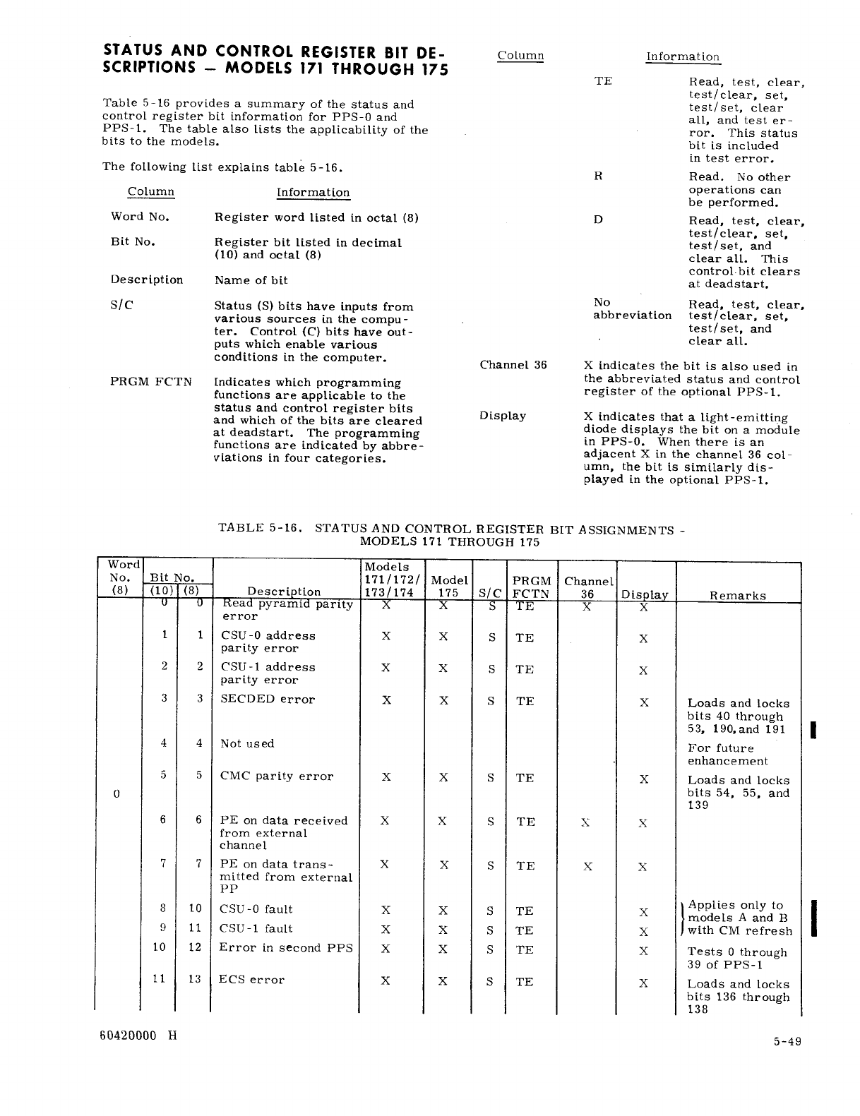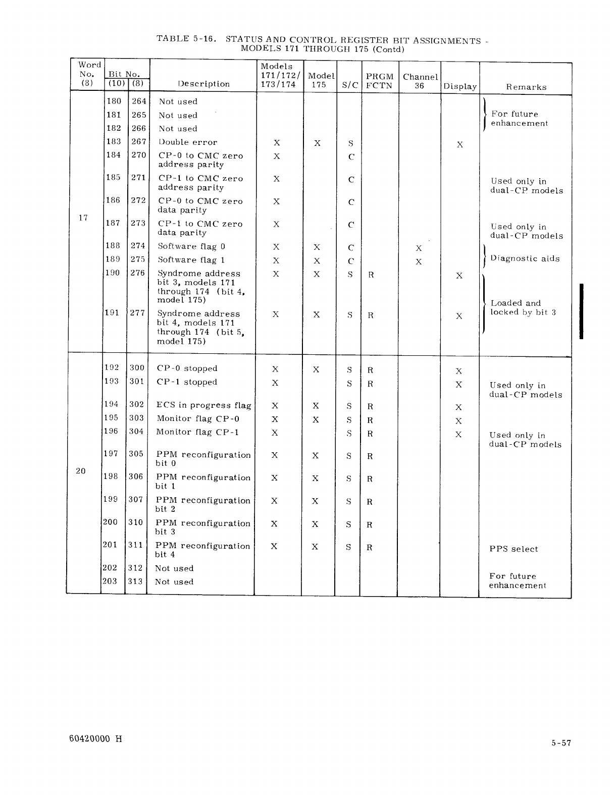 - Status and Control Register Bit Descriptions - Models 171 through 175