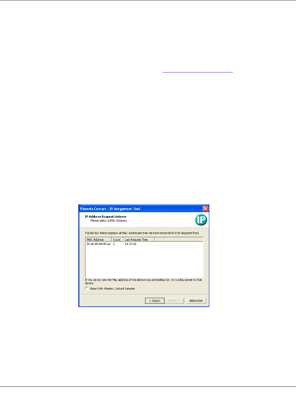 All devices sending a BootP request are listed in the window which opens. These devices