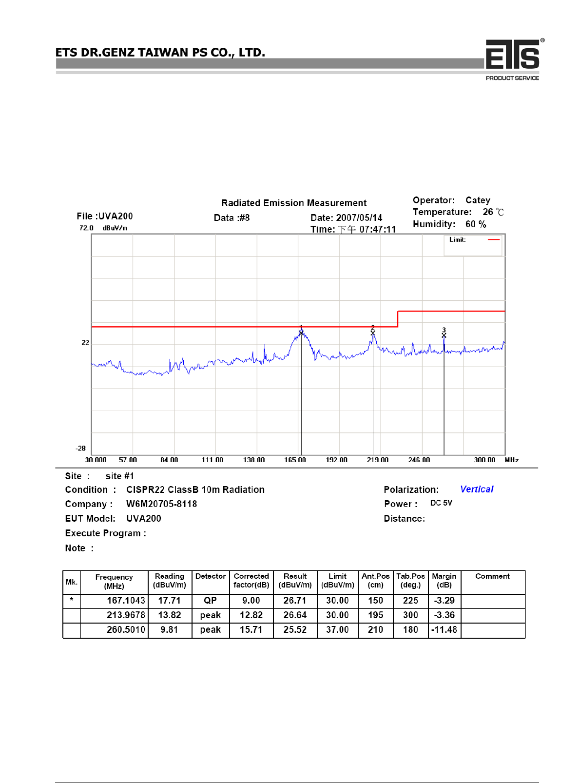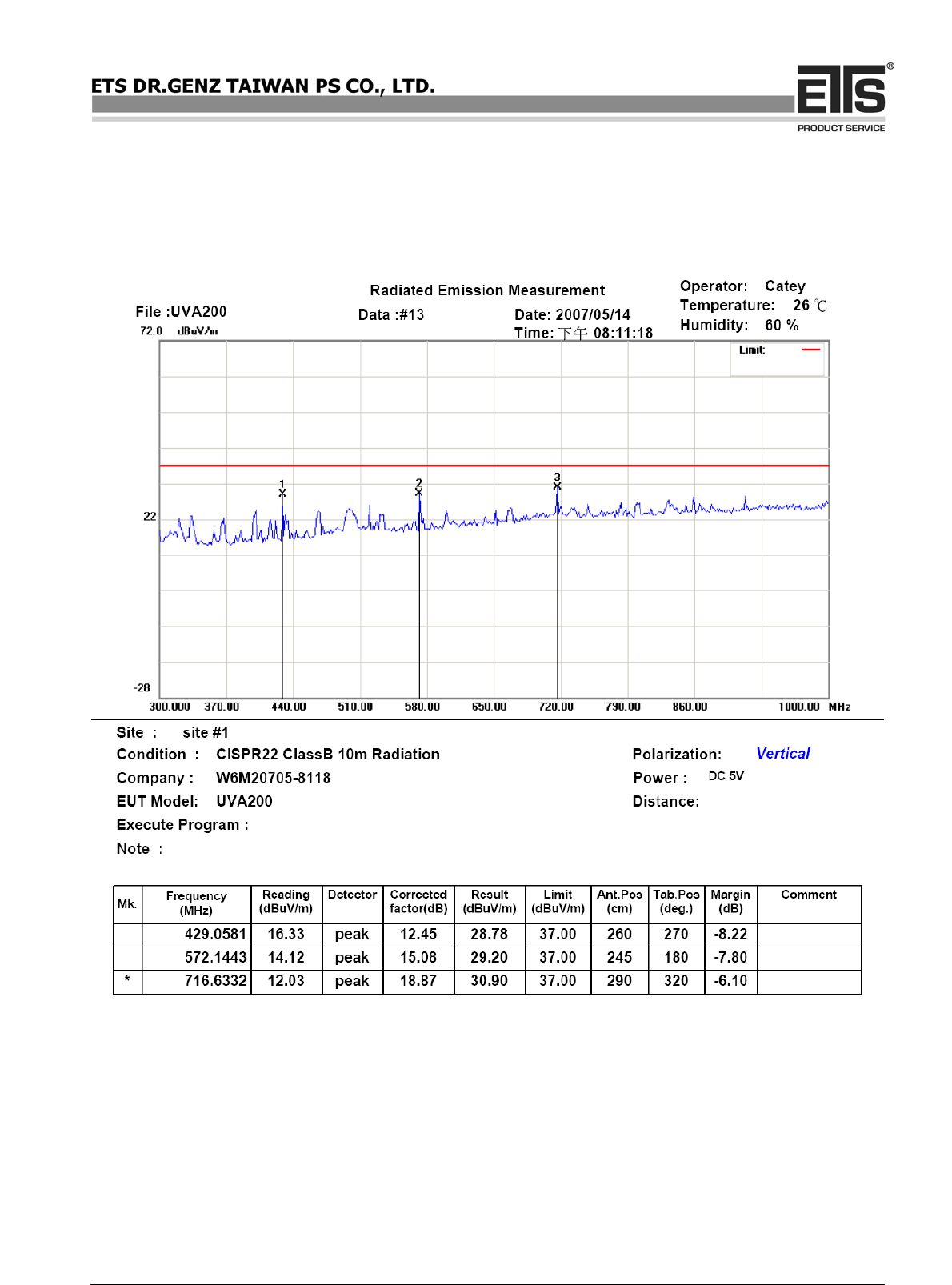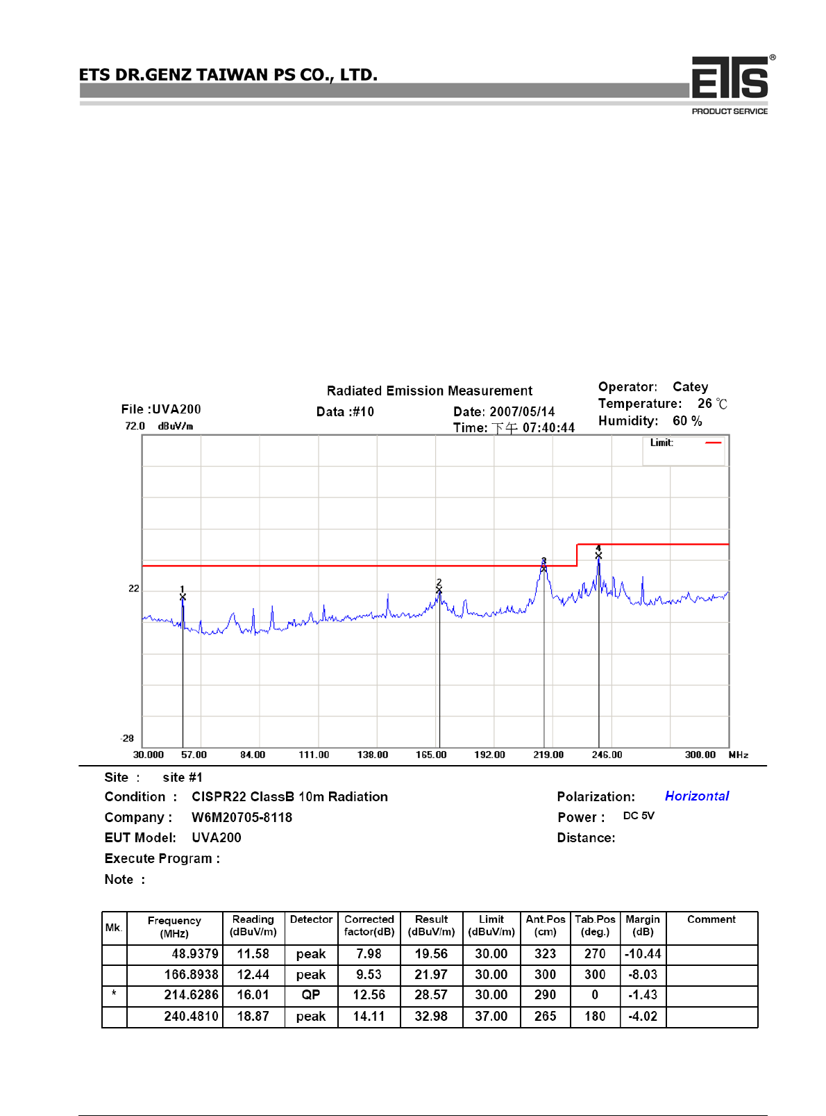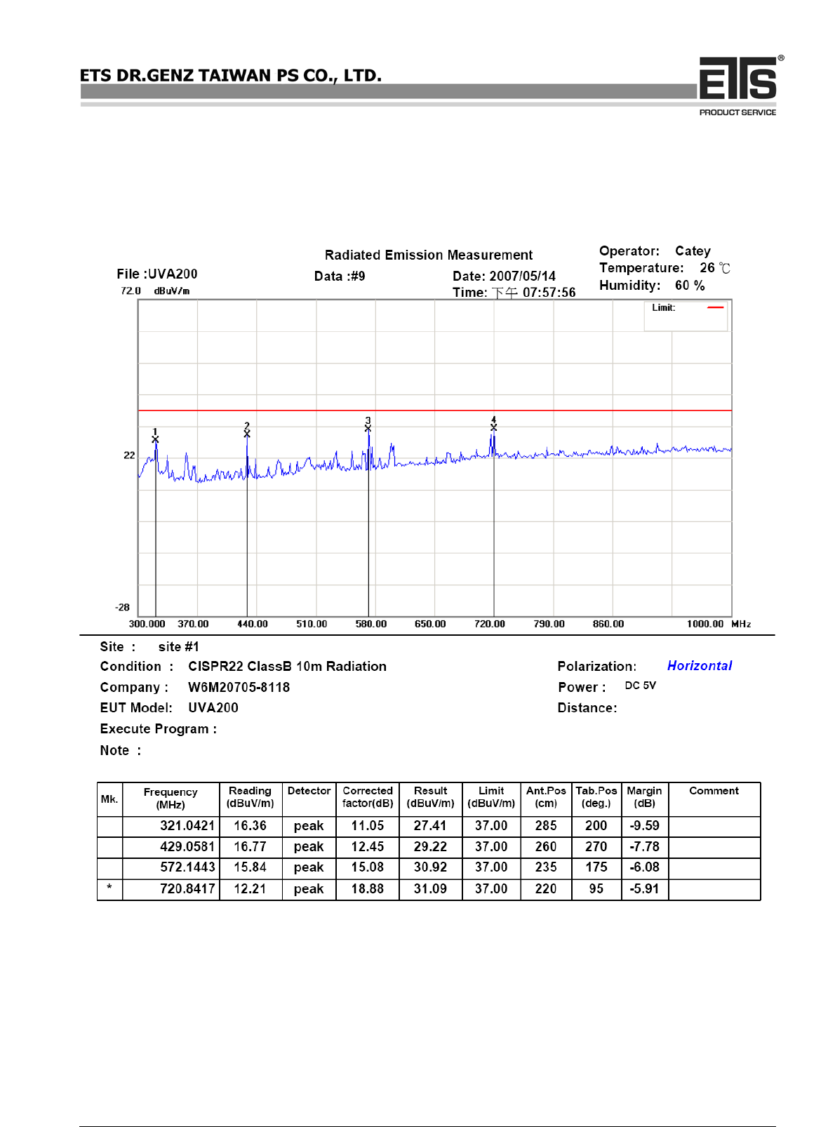Note 1. Correction Factor = Antenna factor + Cable loss - Preamplifier