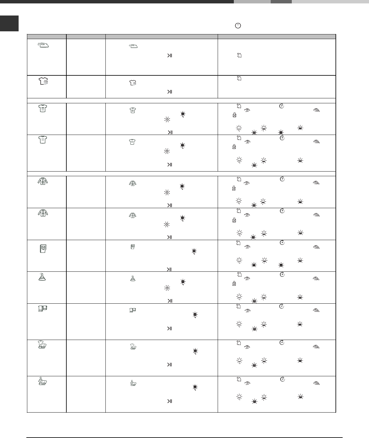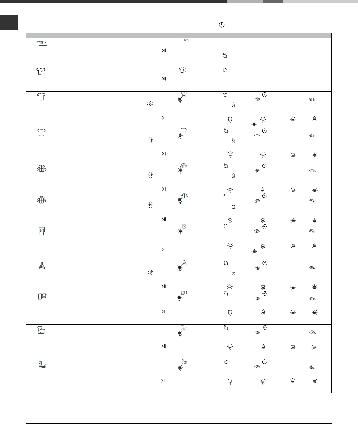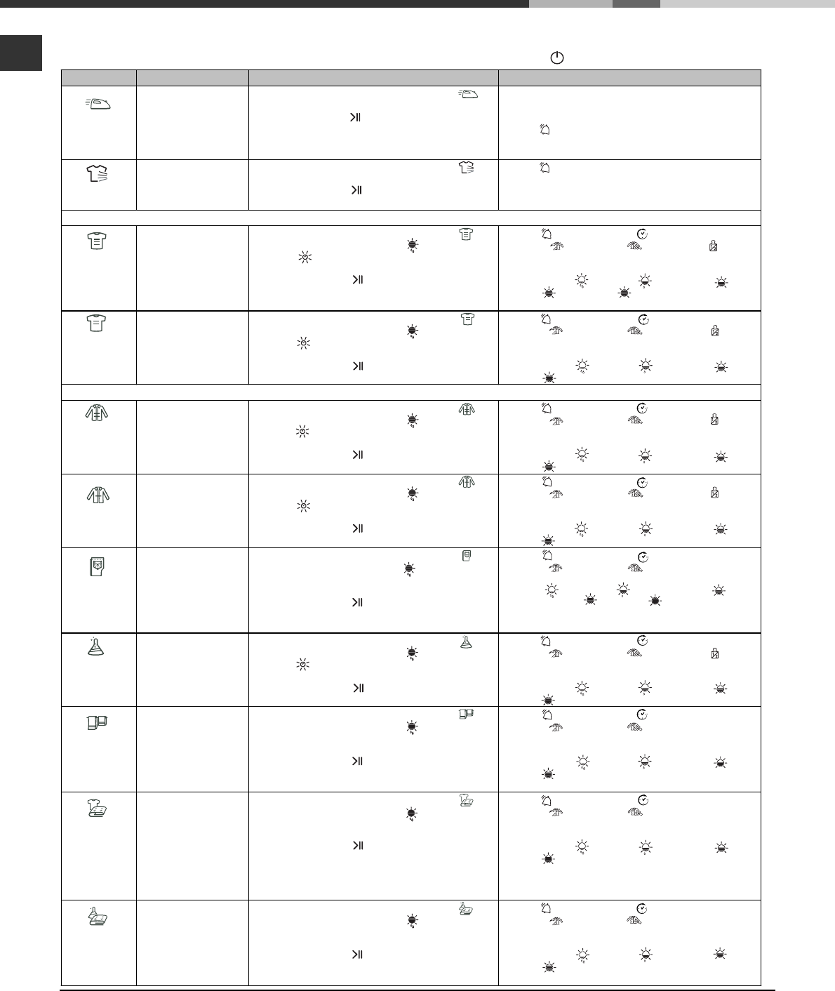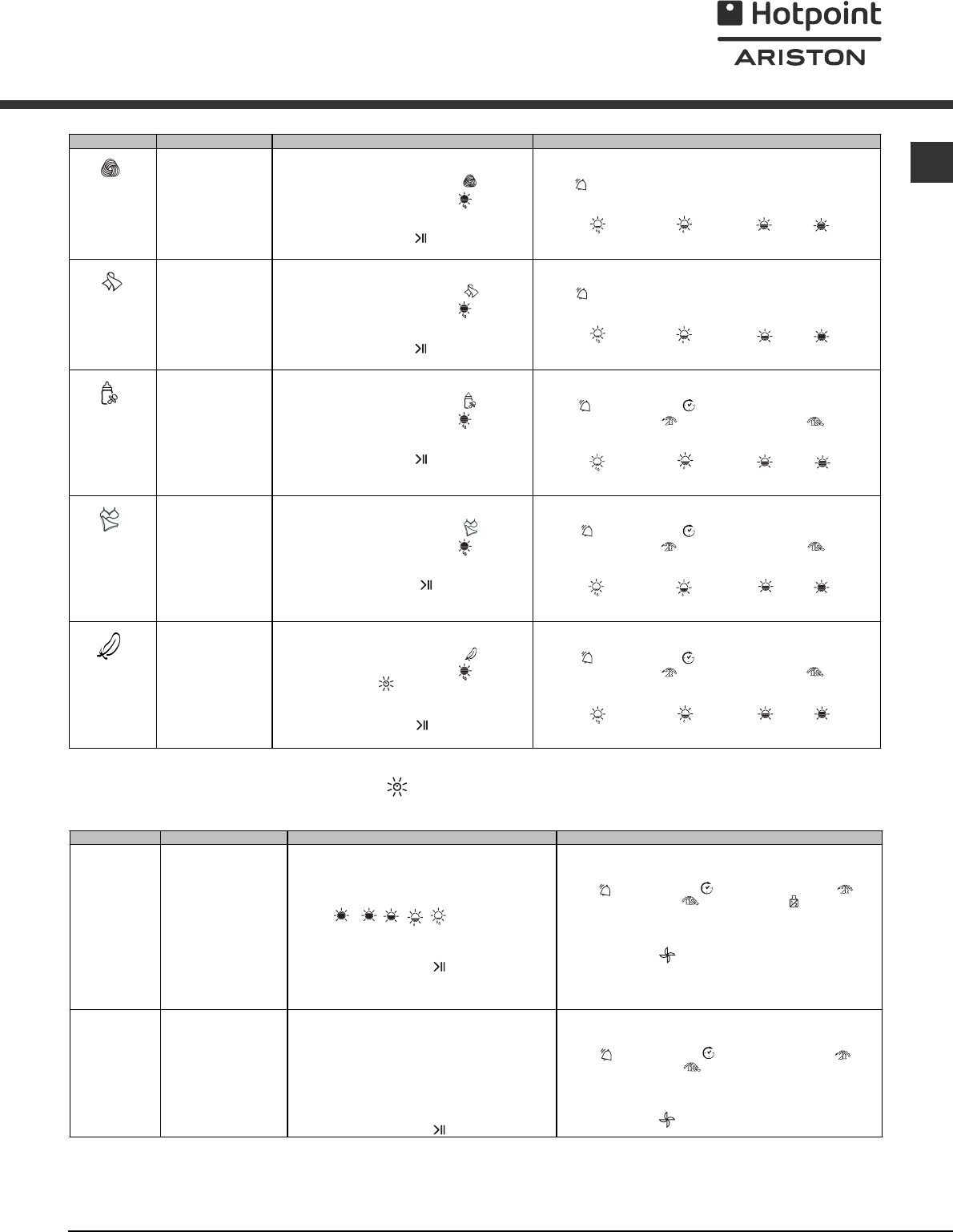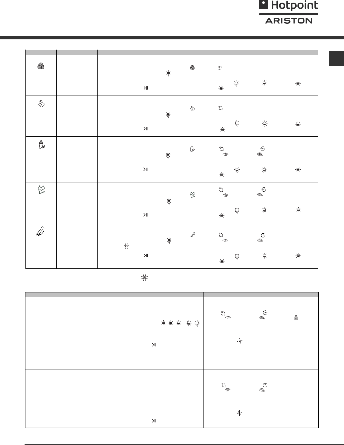Program (EN61121) Kiválasztandó program Töltet mennyisége Automatikus szárítás opció