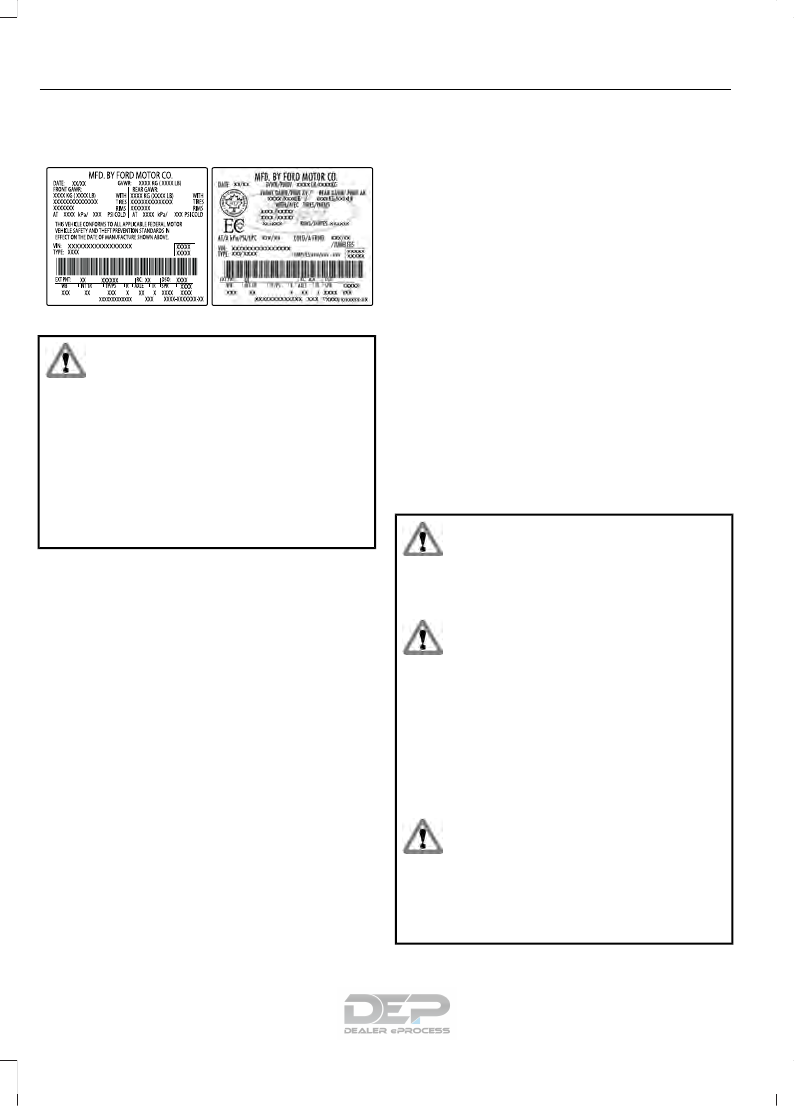 Vehicle Certification Label.......................349