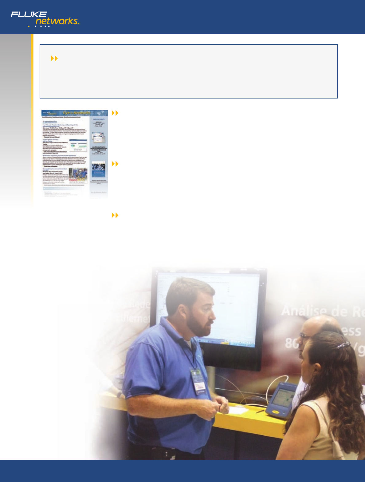 Also look to FlukeNetworks.com for value–added content pages that resonate