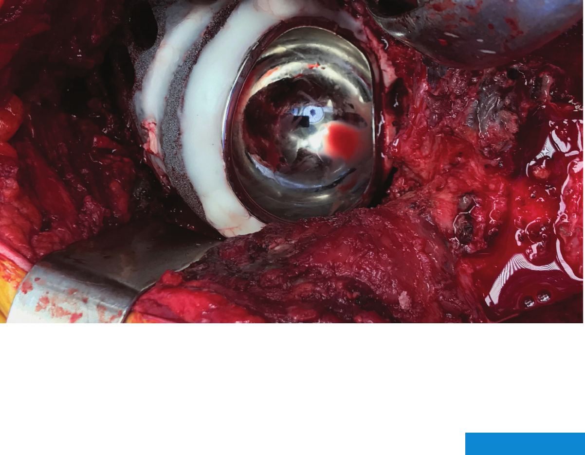 (B) Intraoperative photo showing dual mobility articulation.