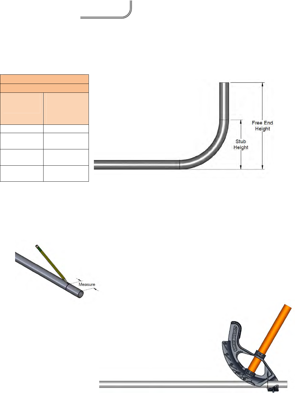 2. From the overall free height, subtract the stub height listed in the Bender Take-Up Table for the