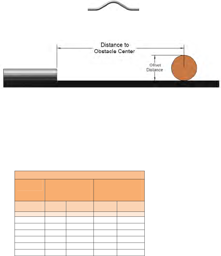 4. Using the Distance off Center Mark values found in the table to clear a 2” obstacle, simply mark