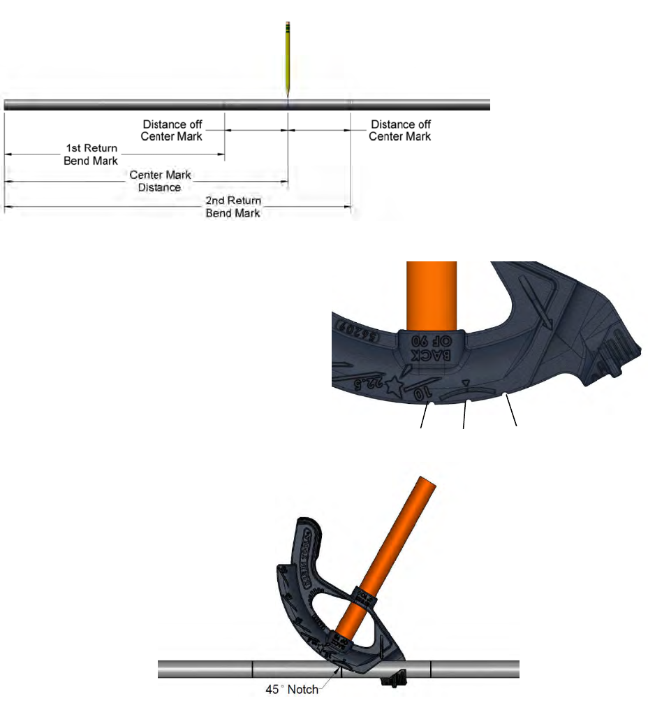 (Center Mark) + (Distance off Center Mark) = 2nd Return Bend Mark