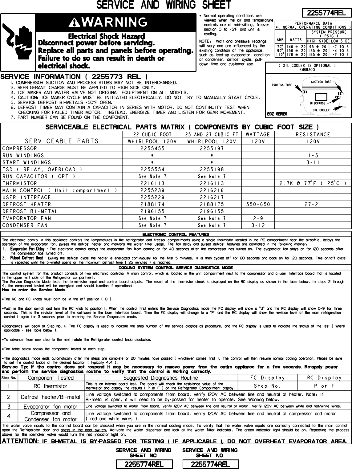 LIT SERVICE AND WIRING SHEET 2255774 Whrlpl Gold GD5NHAXMB00
