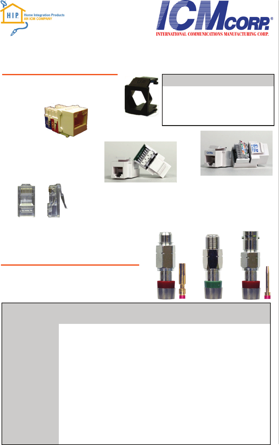 ICM Corporation serves the security, cable, home entertainment, commercial,