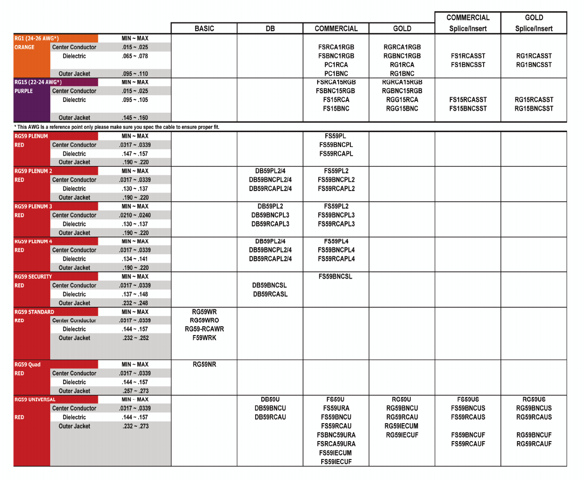 Cable Types Series RG59, RG59Q, RG6, RG6Q, RG11
